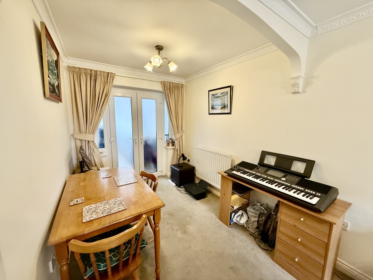 2.2606m x 2.2352m - 7'5" x 7'4"<br>Single central heating radiator, UPVC French doors leading through to the garden room and coved ceiling.