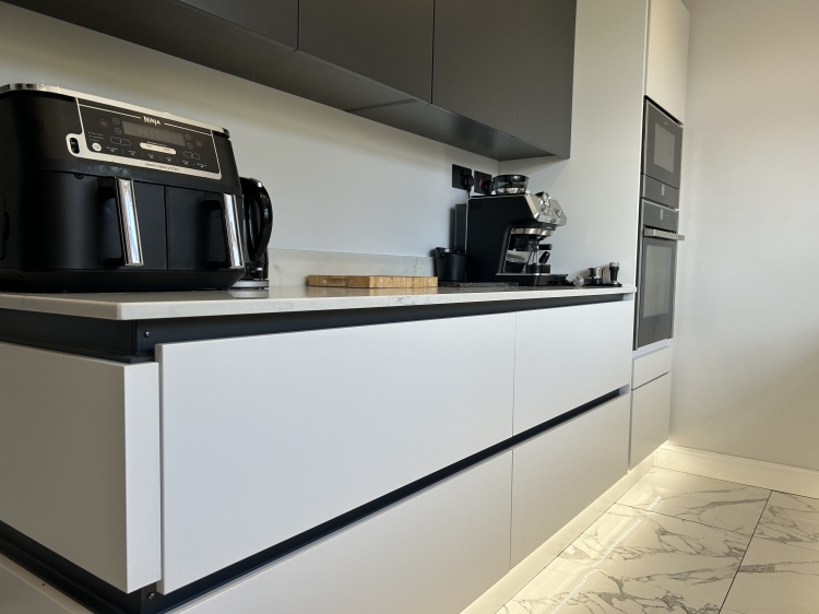 3.83m x 2.12m - 12'7" x 6'11"<br>Finished to a high standard, the kitchen boasts granite worktops, floor-level feature lighting, a sunken one-and-a-half bowl sink, integrated fridge-freezer, microwave, and oven, along with a stylish induction hob and feature black glass extractor canopy and splash.
