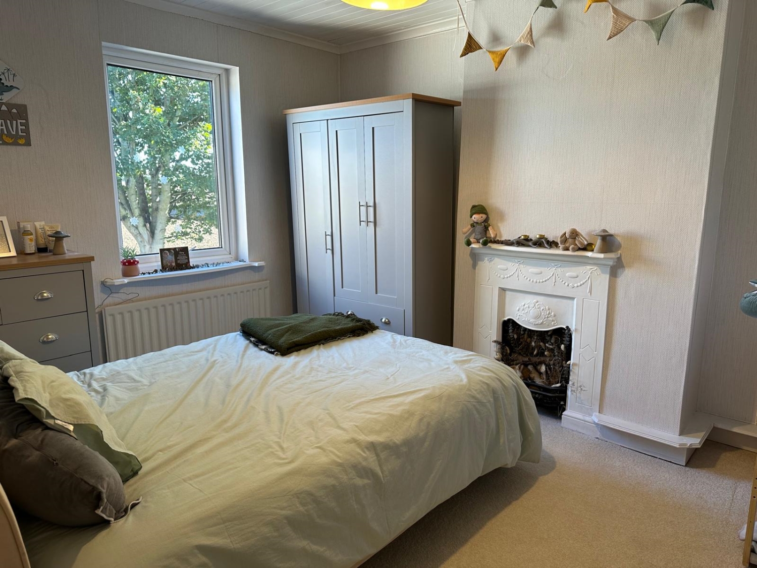 Upvc framed double glazed window, radiator, stunning feature fireplace, built in wardrobes.