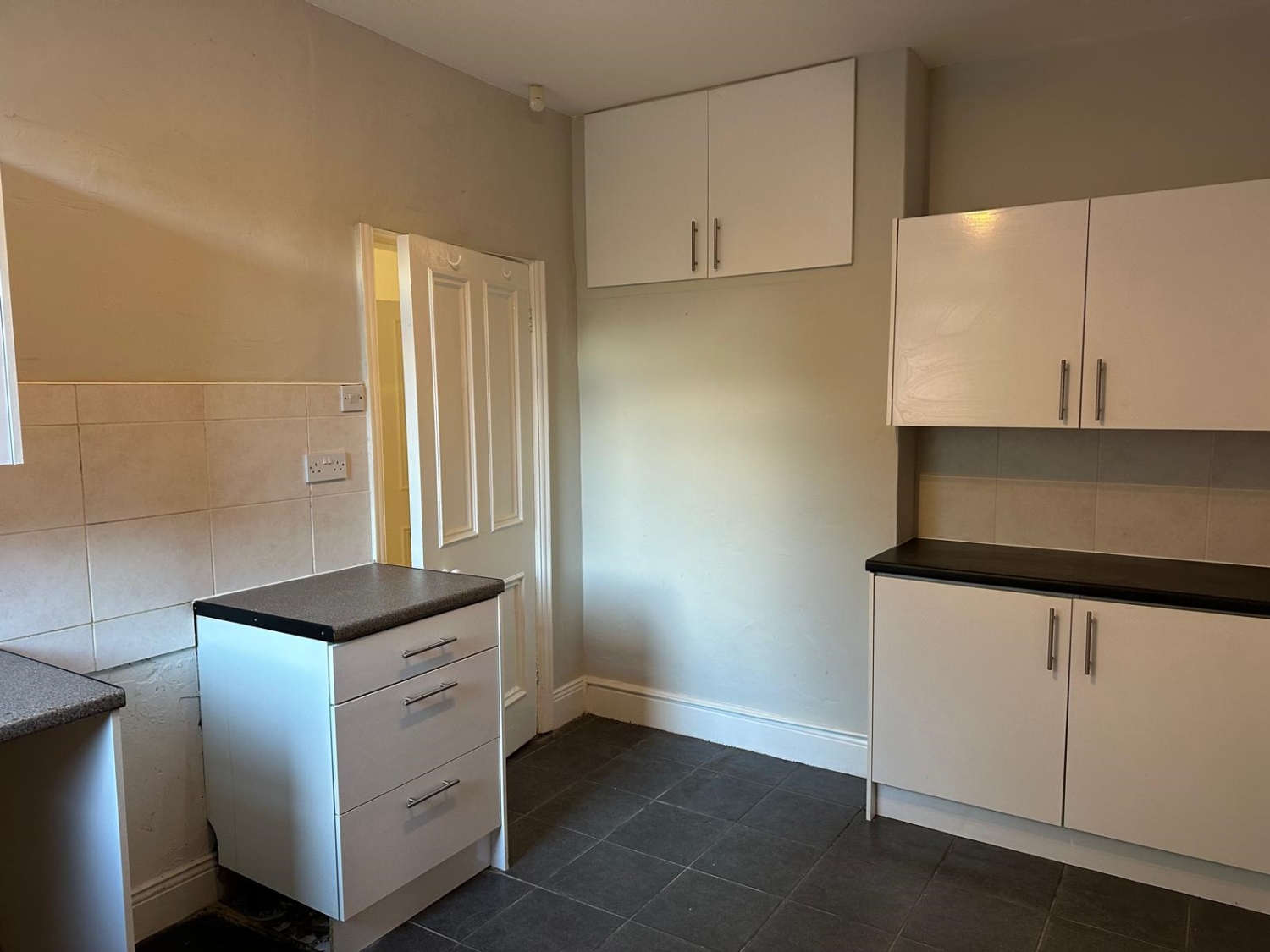 Fitted with a range of base and wall units finished in white with contrasting heat resistant work surfaces, stainless steel sink with mixer tap, free standing oven, space for dishwasher, glazed tiling to splash and work areas, double glazed window, hardwood door leading to outside.