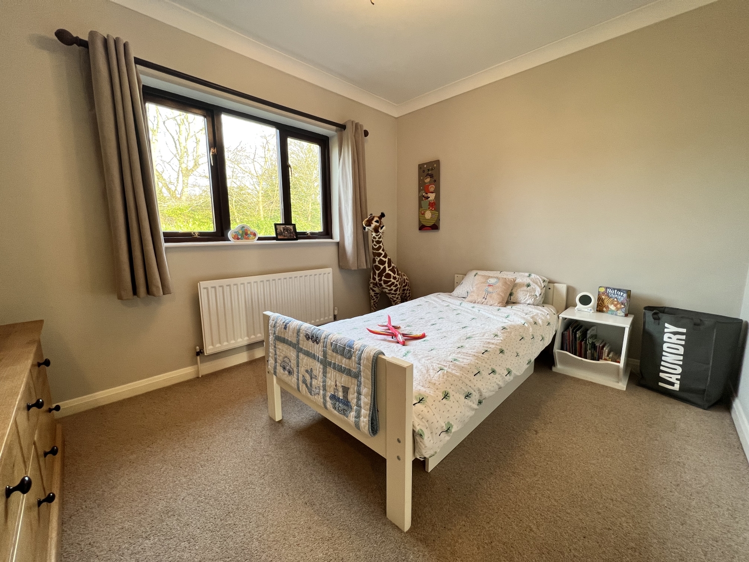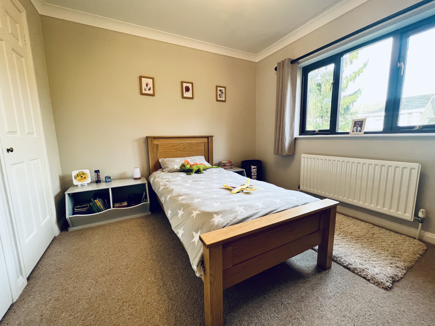 To the front. With built in wardrobes, decorative coving, ceiling rose, two double glazed windows, radiator.