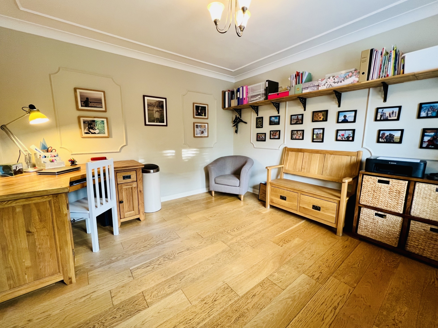 Currently utilised as an office. Window, solid Oak flooring, radiator, decorative coving and ceiling rose.