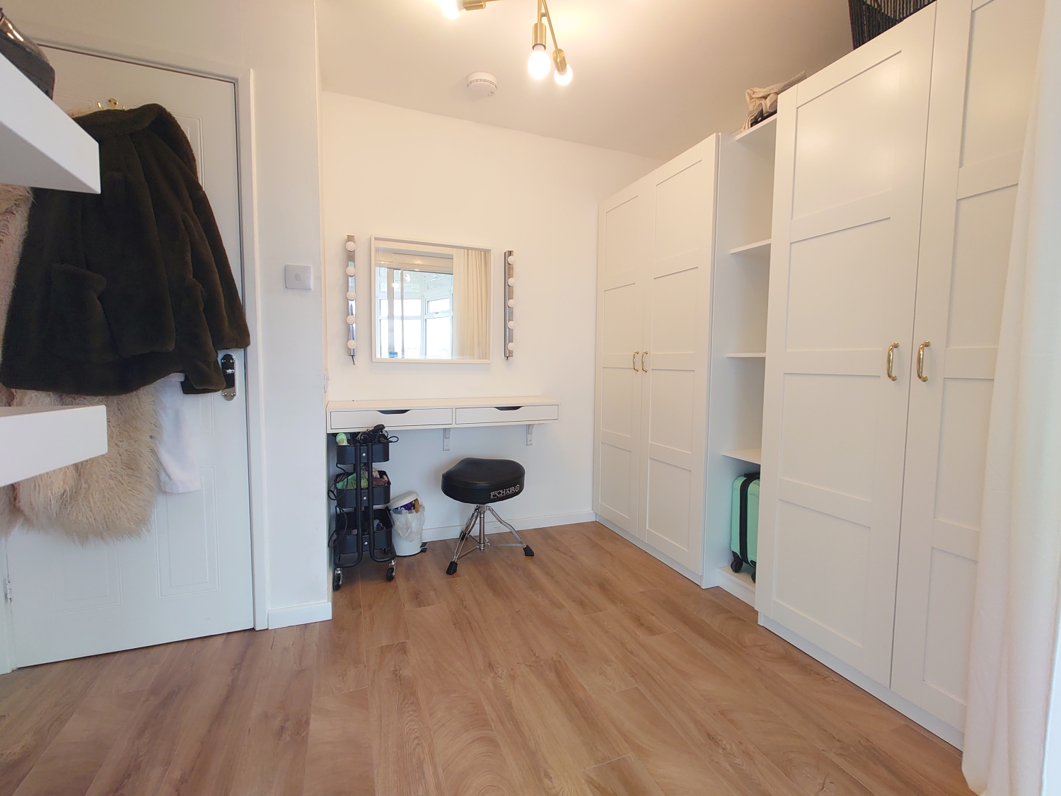A second bedroom which is currently adapted into a superb dressing room with fitted storage and sliding doors leading into the conservatory.