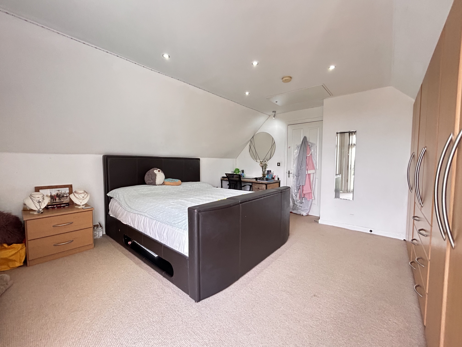 A third double bedrooms with fitted wardrobes, built in storage cupboard, skylight window and access to eves storage space.