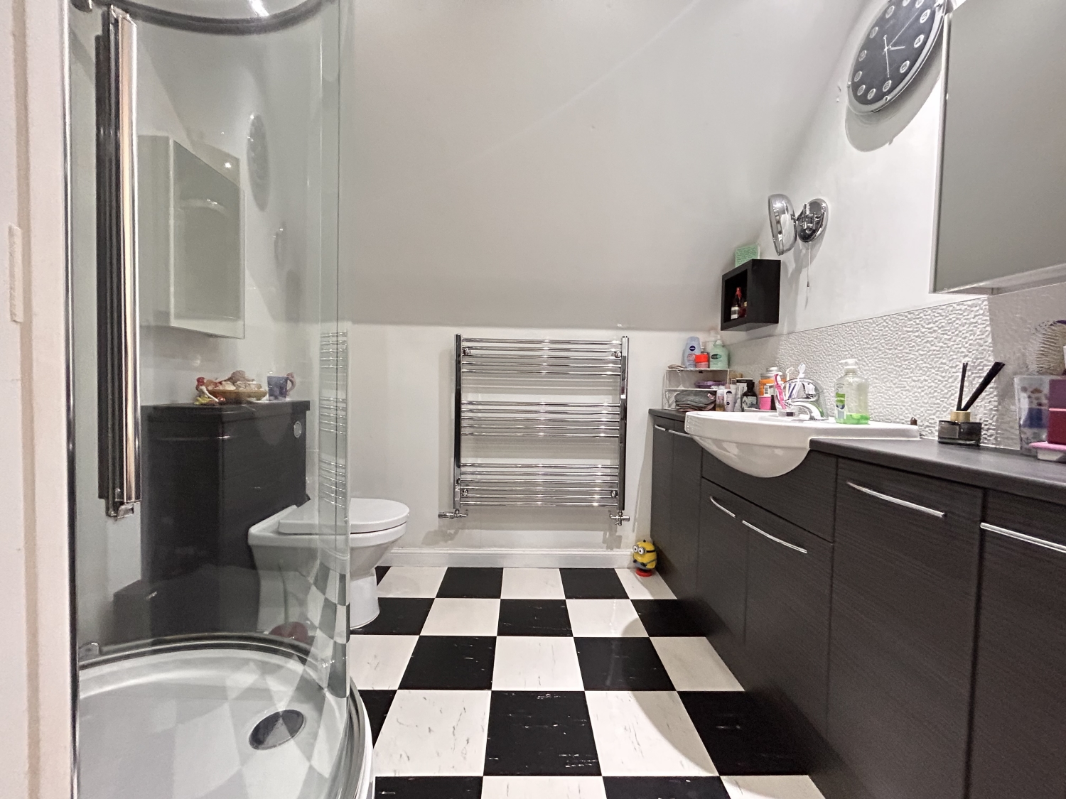 Servicing the upper floor this luxurious shower room adds convenience for for both residents and guests with shower enclosure, vanity sink, and wc.