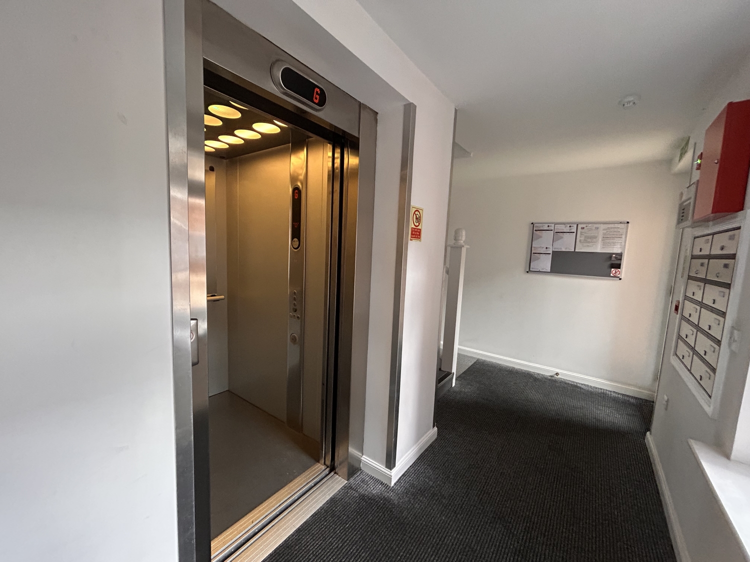 With two built in storage cupboards and door into main hallway.