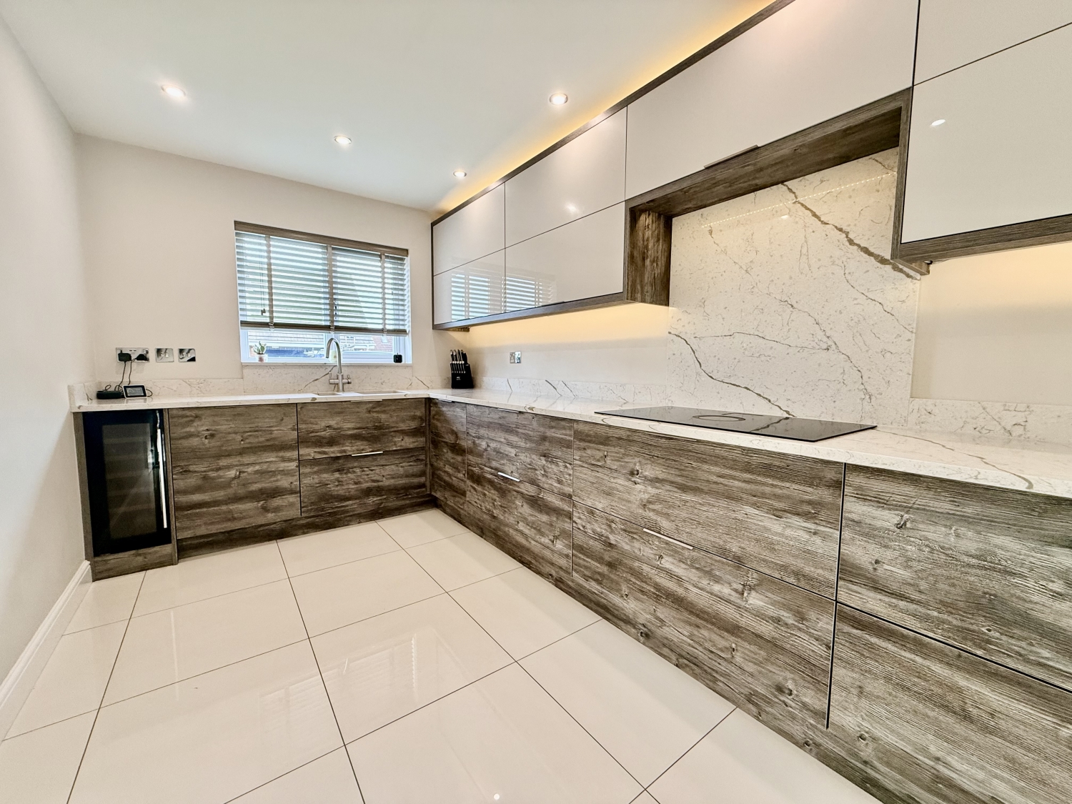 Inside, the house features a stunning, fully refitted kitchen equipped with an extensive range of integrated appliances, including a fridge, freezer, oven, hob, hot plate, coffee machine, dishwasher, wine cooler and a hot/cold filter tap. The oven, coffee machine and zoned ambient lighting are all smart‑enabled, adding a further layer of modern convenience. Please note, there is no washing machine inside the property; however, dedicated utility points for both a washer and dryer are thoughtfully located in the garage.