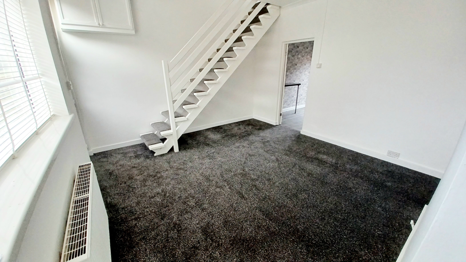 Upvc framed double glazed window, radiator, stairs accessing the first floor, door leading into:-