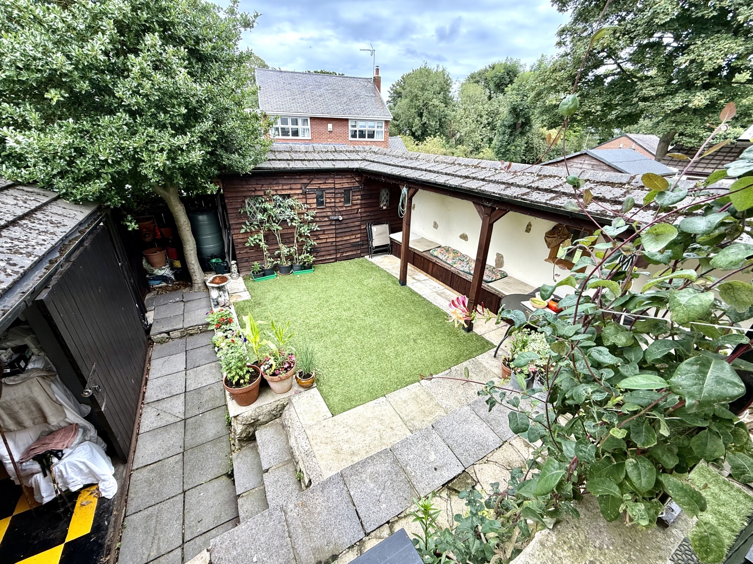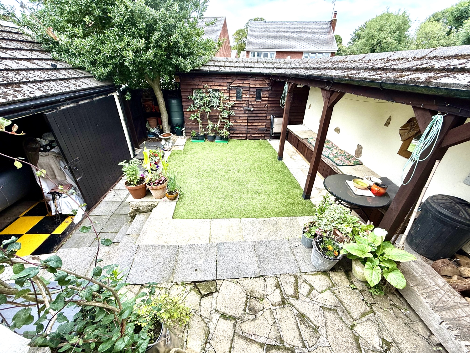 To the rear of the property, there is a fully enclosed, private garden which is artificial laid, useful storage shed, seated pergola and larger than average detached garage with electric roller door, power and lighting and sliding roller door to the side with access into the garden. To the front of the property, there is a shared forecourt.