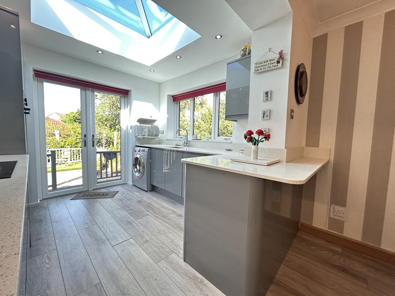 This beautifully presented and significantly extended semi-detached bungalow offers stylish, spacious living in a peaceful residential setting. Thoughtfully remodelled to create a flowing layout and enhanced by a striking kitchen extension, the property is ready for immediate occupation.