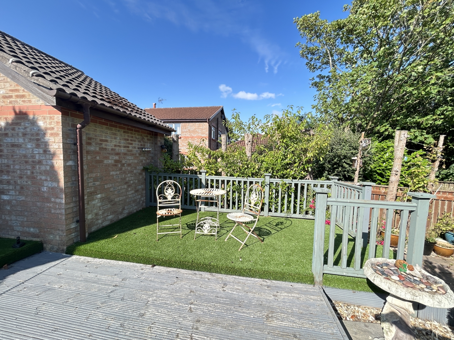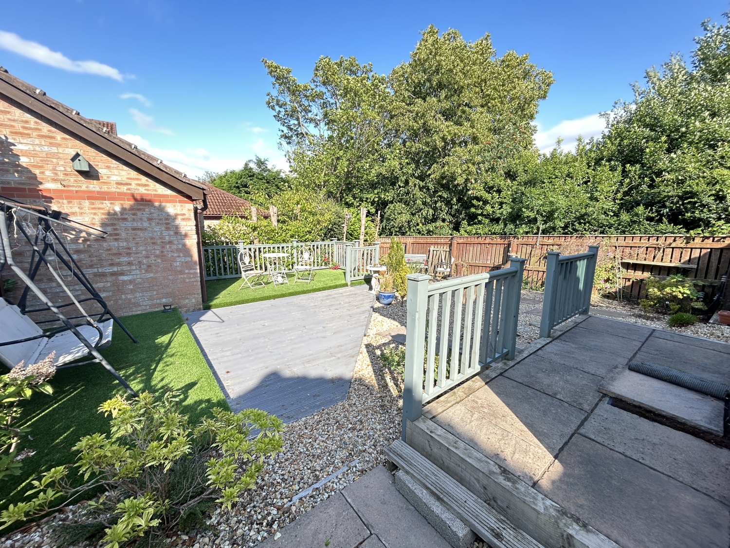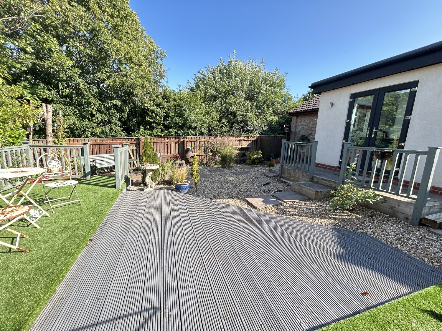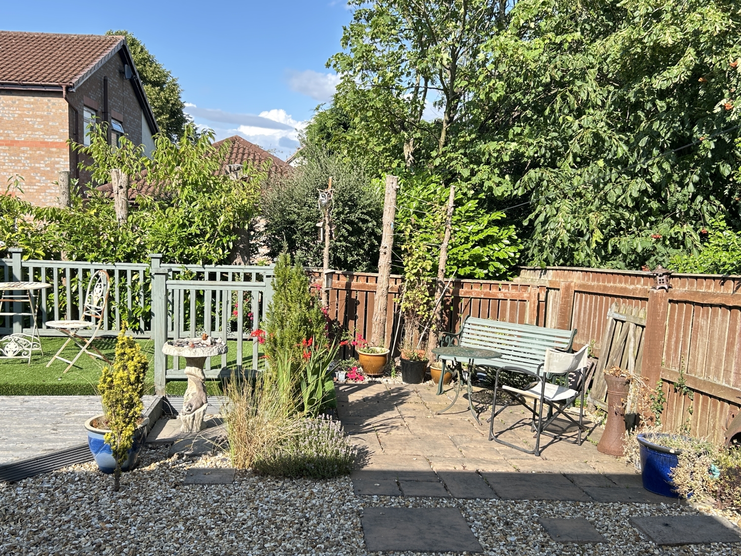 Externally, the property occupies a generous corner plot with beautifully landscaped, low-maintenance gardens including paved and gravelled patio seating areas—ideal for outdoor entertaining or relaxing during the summer months.