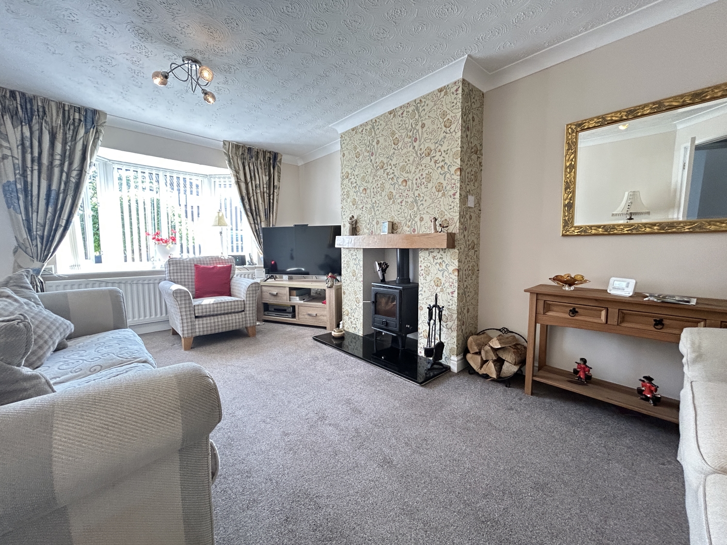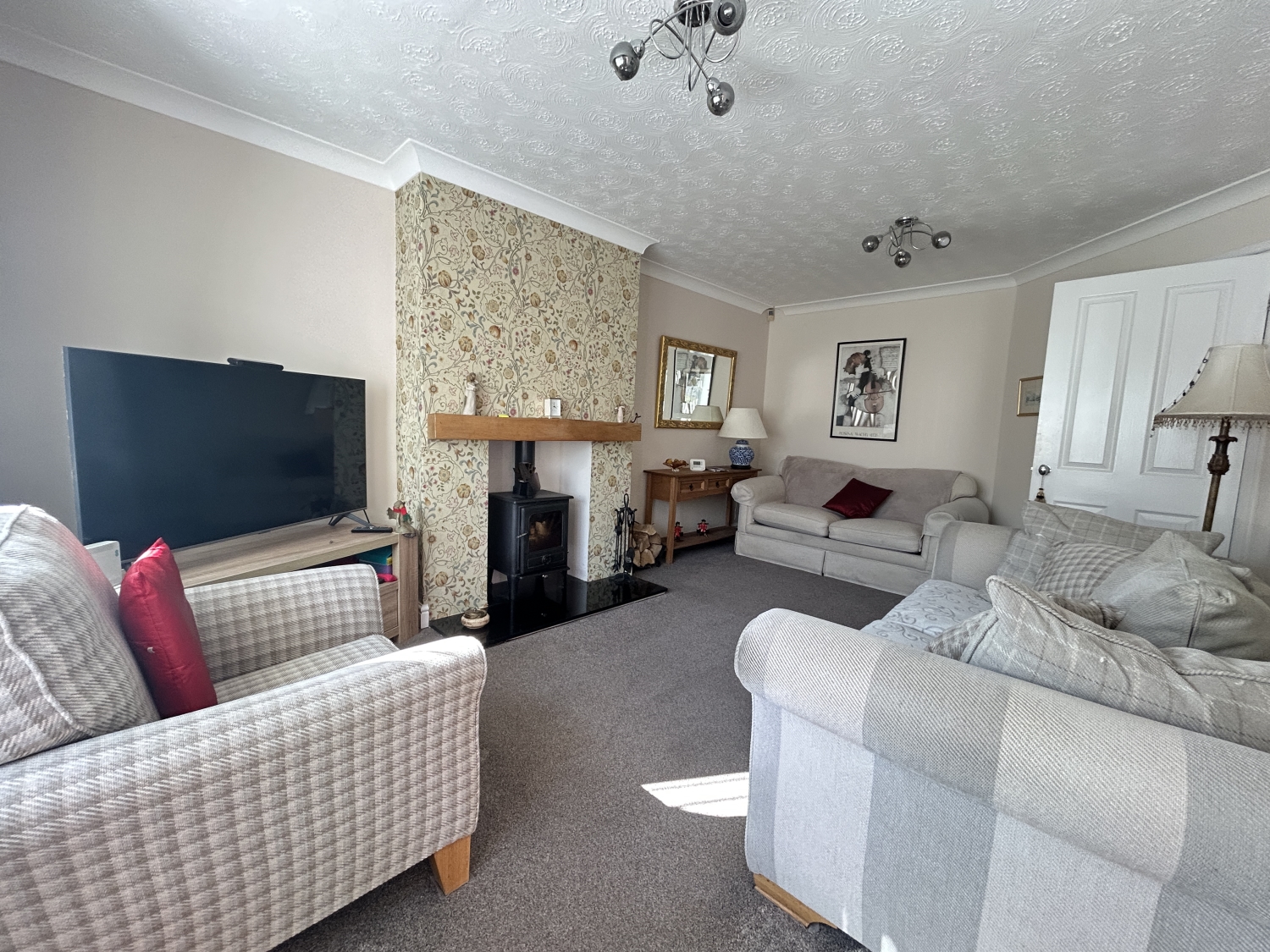 The accommodation begins with a welcoming entrance hall leading into a spacious lounge, complete with a bow window and feature fireplace, creating a warm and inviting atmosphere. An inner hallway with a useful built-in storage cupboard provides access to all main rooms.