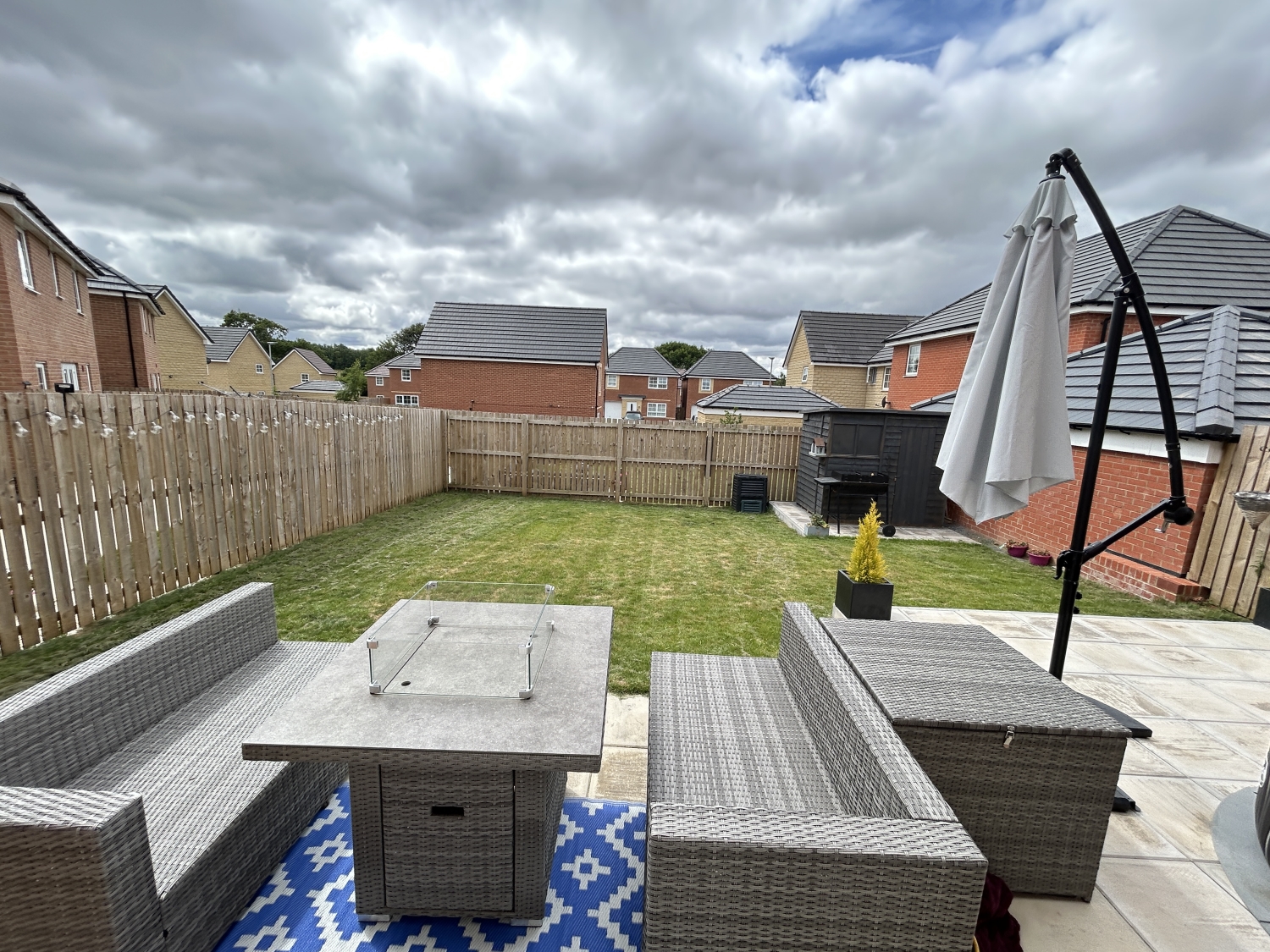 Externally, the home offers a double driveway to front, and an attractive rear garden that enjoys a sunny southerly aspect with paved patio seating area and garden shed — perfect for relaxing or entertaining in the warmer months.