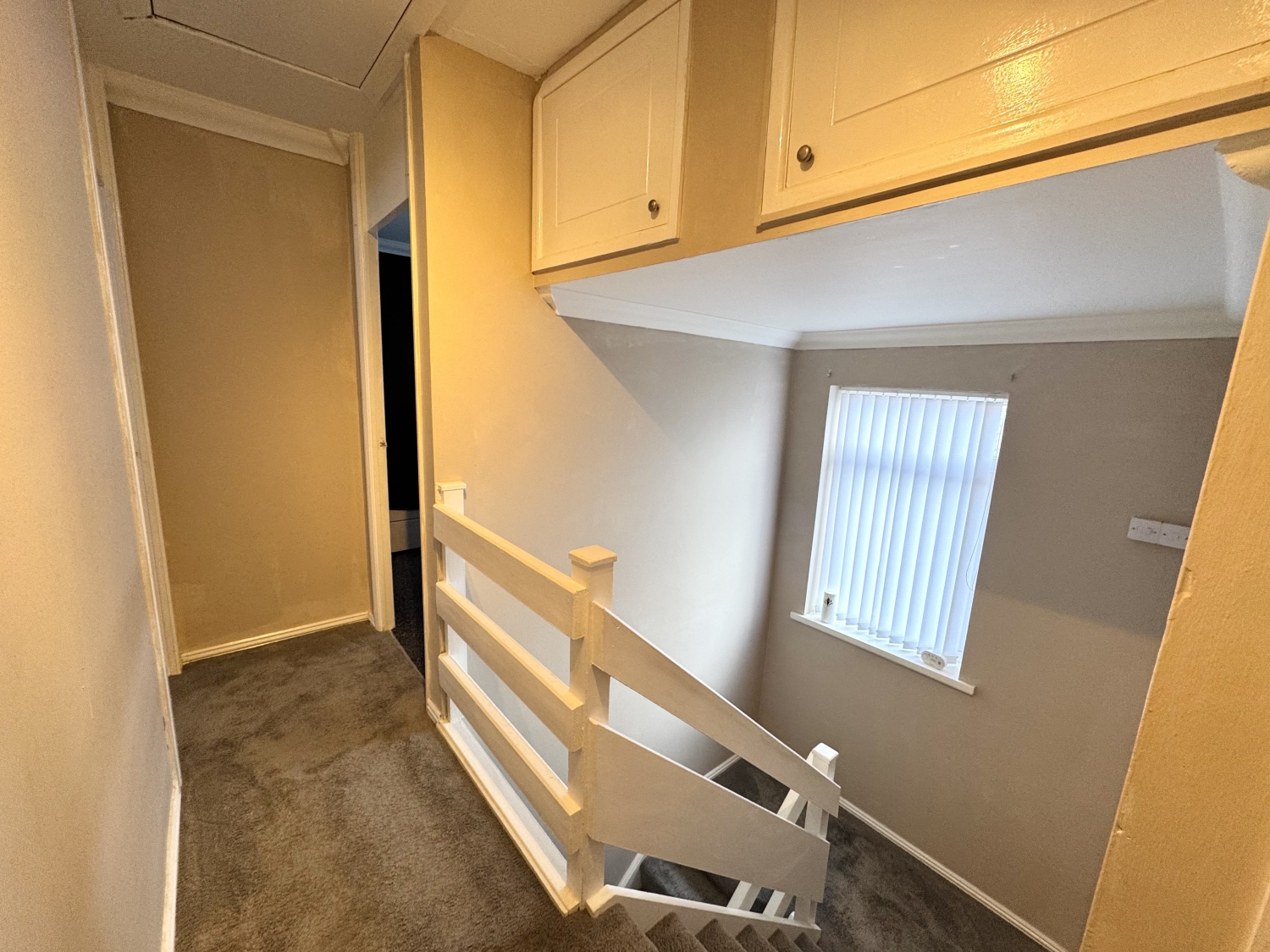 Two storage cupboards, double glazed window to the front elevation, loft access