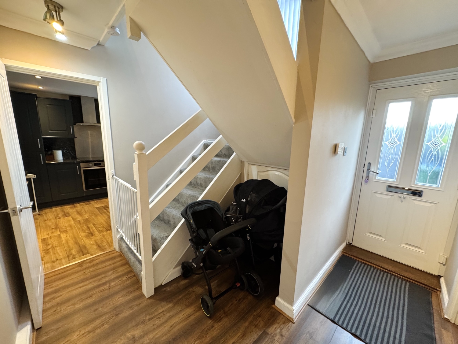 Step inside and you're welcomed by a spacious entrance hallway, thoughtfully designed with two built-in storage cupboards to keep everyday essentials neatly tucked away. The hallway also provides access to a convenient downstairs WC and leads to the staircase rising to the first floor.