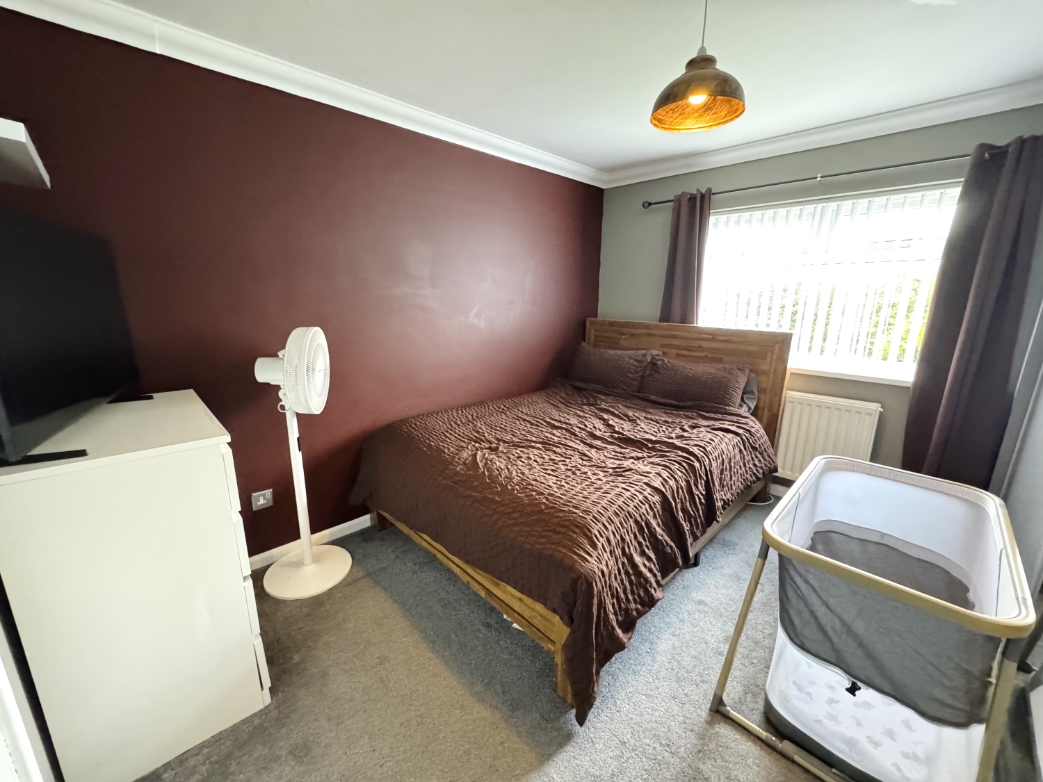 Upstairs, the landing leads to three well-proportioned bedrooms, each offering comfortable accommodation. The master bedroom is particularly impressive, complete with fitted wardrobes that provide ample storage while maintaining a clean and uncluttered aesthetic. The family bathroom is finished to a high standard, boasting a contemporary four-piece suite that includes a separate shower, bath, wash basin, and WC—offering both practicality and a touch of luxury.