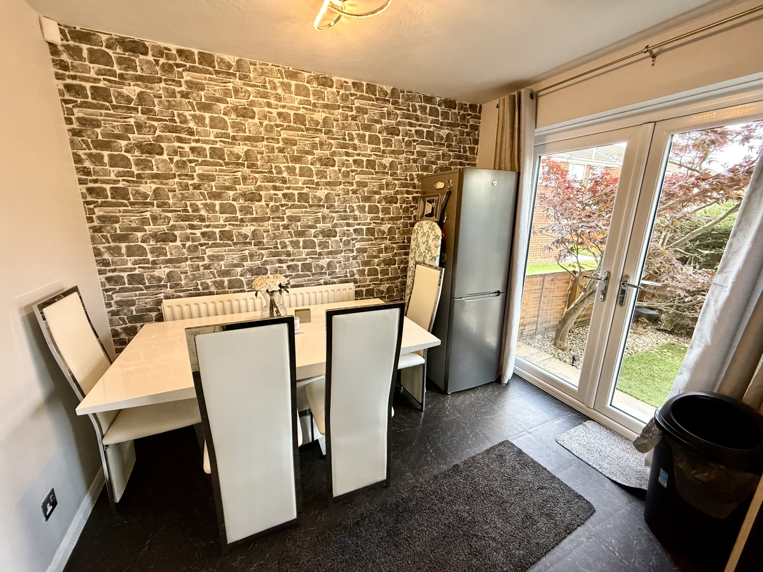 Fitted with an excellent range of wall and base units having contrasting work surfaces, incorporating a coloured sink unit with mixer tap and drainer. Double glazed UPVC window to the rear, double glazed UPVC French doors, single central heating radiator, built in oven, four ring gas hob and stainless steel extractor hood and plumbing for an automatic washing machine.