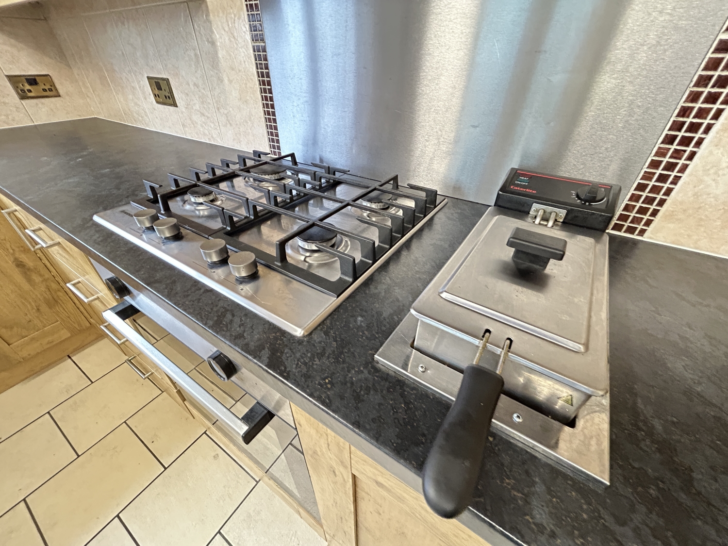 The superbly extended kitchen offers extensive storage and worktop space, with an integrated oven, hob, fryer, and extractor canopy, plus room for appliances and a family breakfast table—making it the perfect hub of the home.
