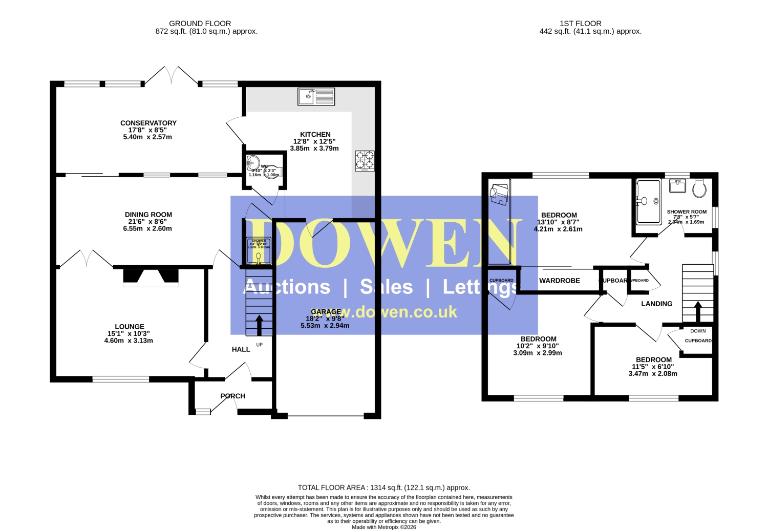 The well‑presented accommodation briefly comprises an entrance porch leading into a welcoming hallway, a comfortable lounge with feature fireplace, and French doors opening into a spacious dining room. From here, sliding doors connect to an impressive 5.5‑metre conservatory with lovely views over the rear garden. An inner lobby provides access to a cloakroom/WC and a separate ground‑floor shower room.