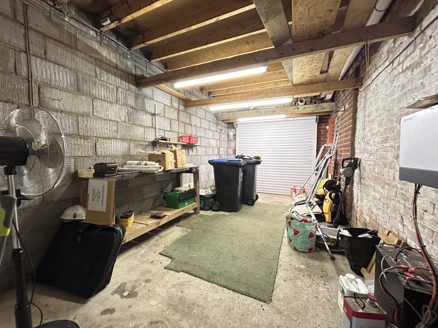 Externally, the property boasts a front garden and a driveway to the side leading to a generous single garage, complete with an electric remote‑controlled roller door, lighting, power, and internal access to the house. The enclosed rear garden provides an ideal outdoor retreat for relaxation or entertaining, featuring a large lawn, paved patio areas, and a substantial storage shed/workshop.