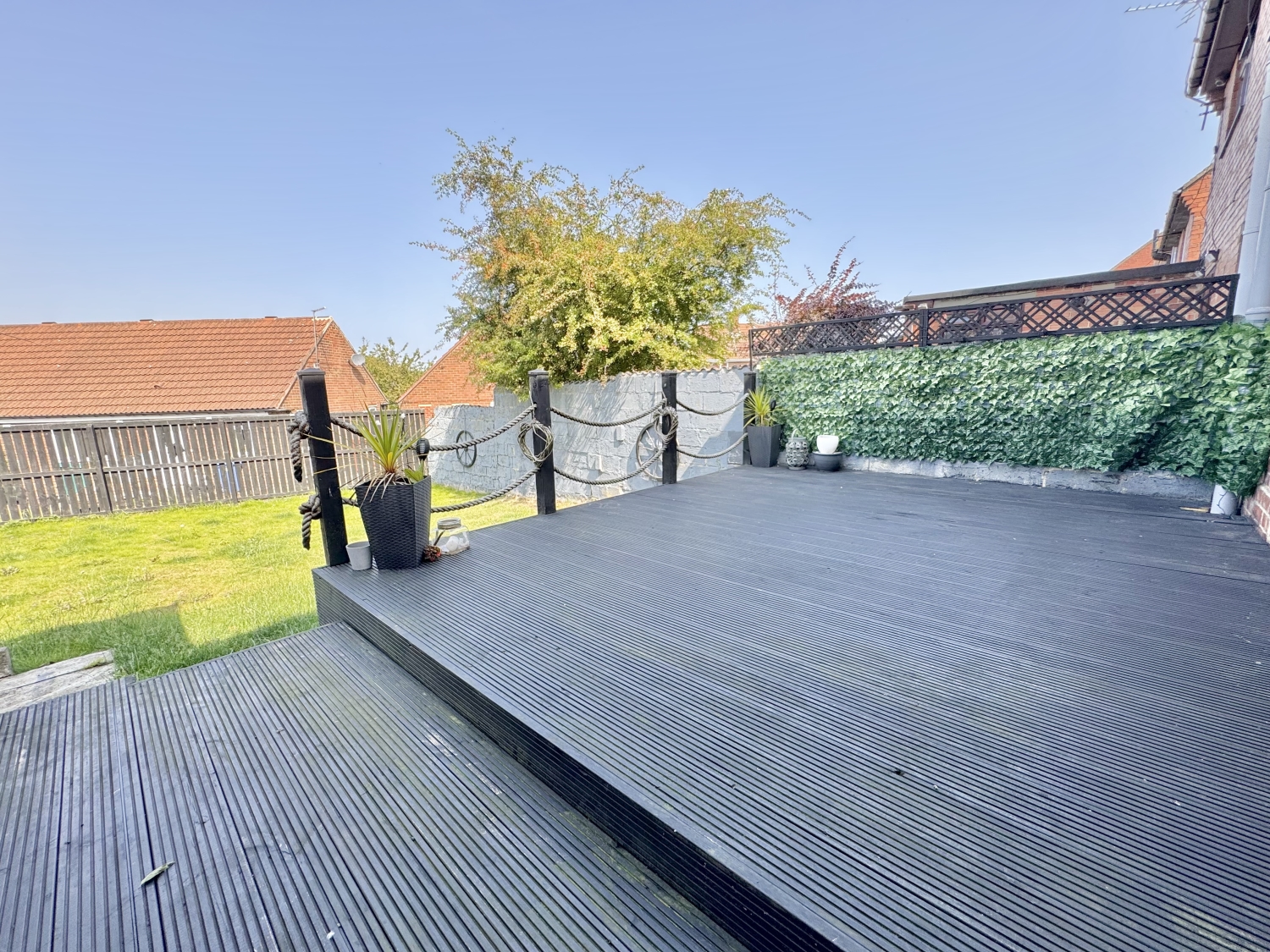Outside, the front of the property is brick-paved and open, providing a smart and welcoming approach. To the rear is a fully enclosed garden laid to lawn, complemented by a raised decked area perfect for outdoor dining and relaxation.