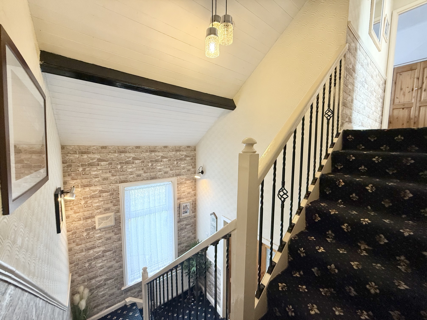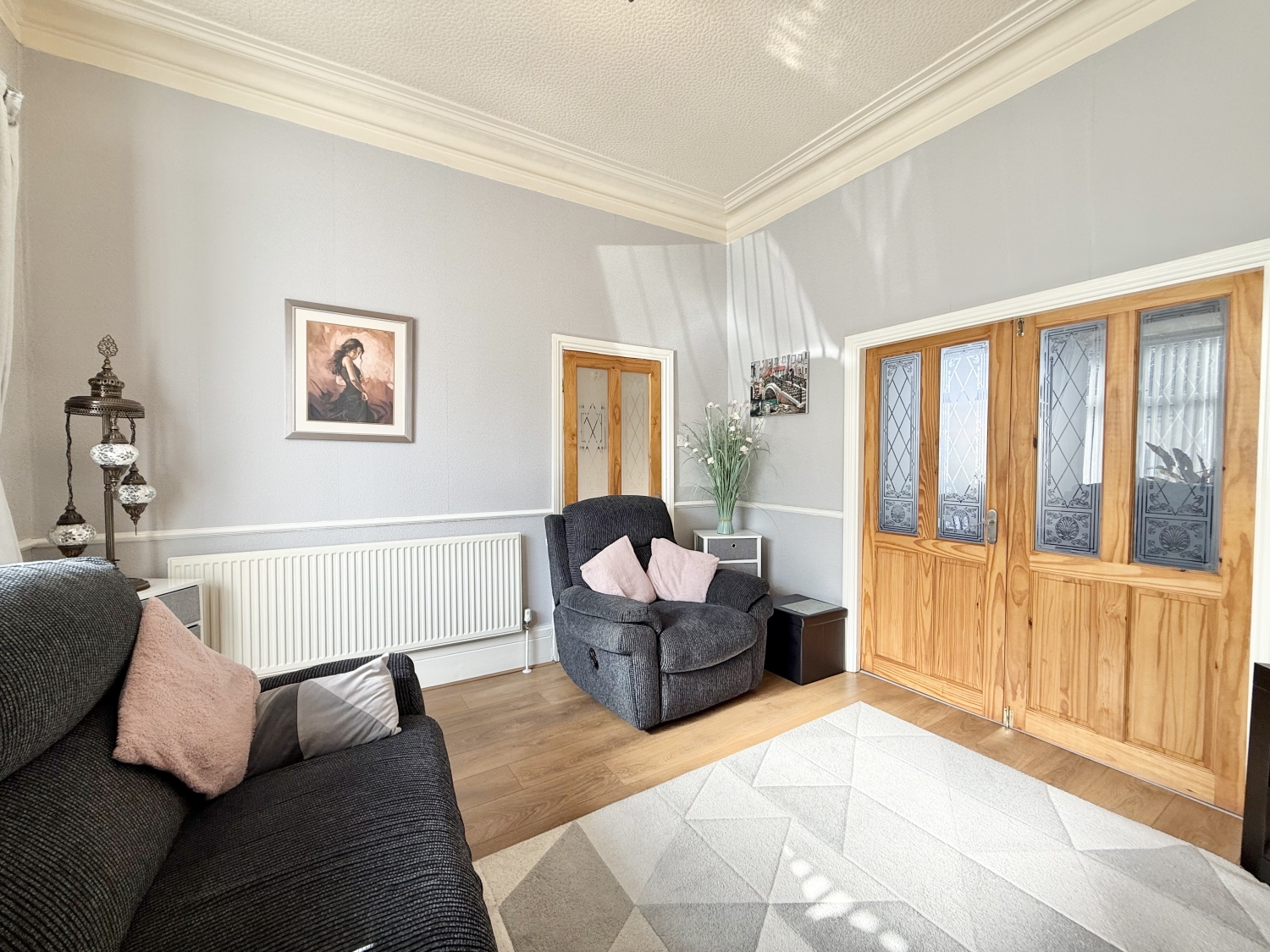 OIRO £139,950This beautifully maintained and deceptively spacious home is perfect for families or those looking for versatile living space. Located in a popular residential area, the property is offered with no onward chain, allowing for a smooth and hassle-free purchase. Upon entering, you are welcomed into a hallway that leads to a ground floor fourth bedroom with built-in storage. The lounge is filled with natural light and flows seamlessly into the dining room through double doors, creating a perfect space for relaxing or entertaining. The dining room also features a charming multi-fuel log burner, adding warmth and character to the space. A generous kitchen offers ample worktop and storage space, while the rear lobby provides direct access to the garden. The ground floor also boasts a large, modern wet room. From the dining area, an internal hallway leads to the staircase and up to the first floor, which comprises three spacious double bedrooms. The main bedroom benefits from fitted wardrobes, and the entire first floor has recently had a newly fitted felt roof along with improved insulation. Externally, the property features a beautiful and private rear garden with low-maintenance artificial turf, as well as off-road parking accessed via an electric roller shutter door. Further benefits include gas central heating and double glazing throughout. This home offers an outstanding floorplan, excellent condition throughout, and must be viewed to be fully appreciated.