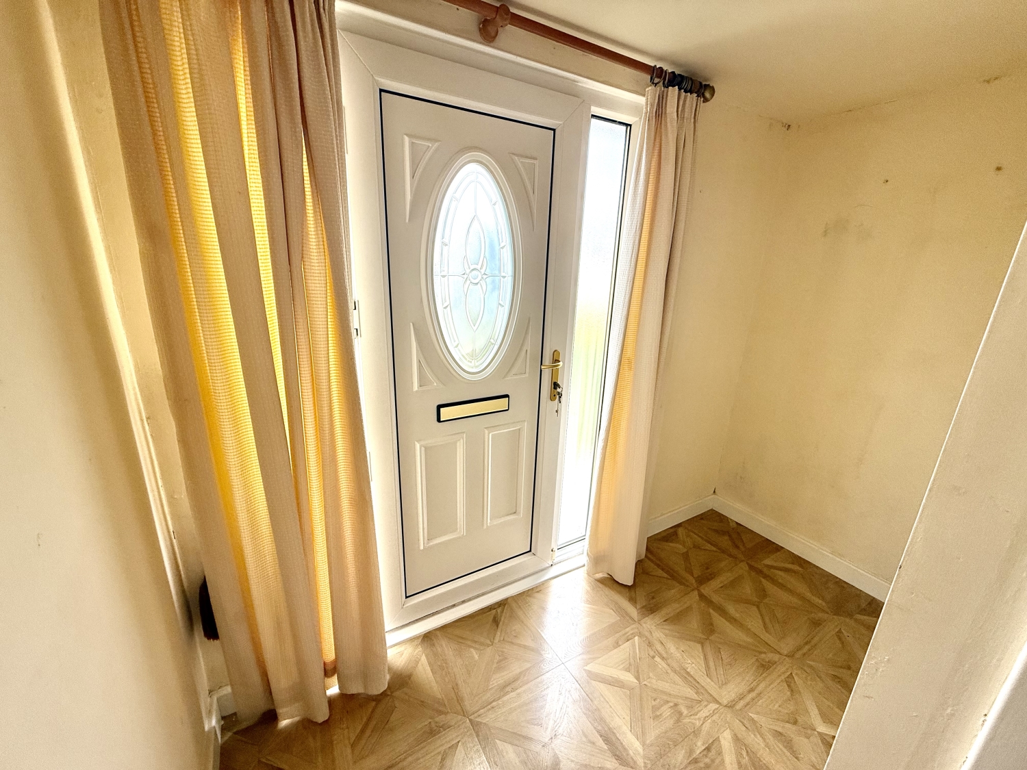Entered via a UPVC door, double glazed UPVC side frosted panel windows and laminate flooring.