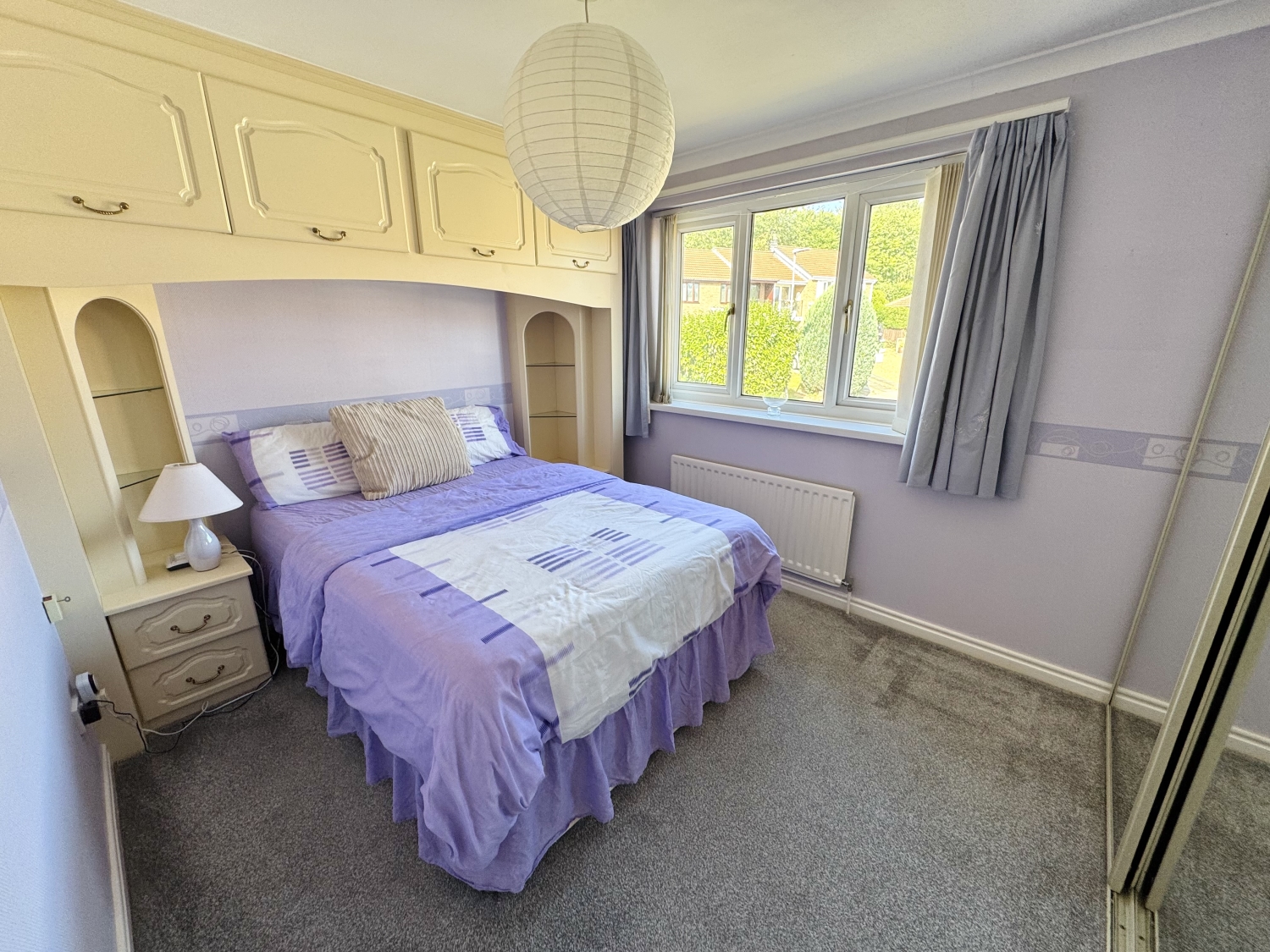 To the first floor, a landing with storage cupboard and loft access leads to three bedrooms. Bedroom one and bedroom two both benefit from fitted wardrobes, offering ample storage, while the third bedroom makes an ideal child's room, office, or nursery. The family bathroom completes the first-floor accommodation.