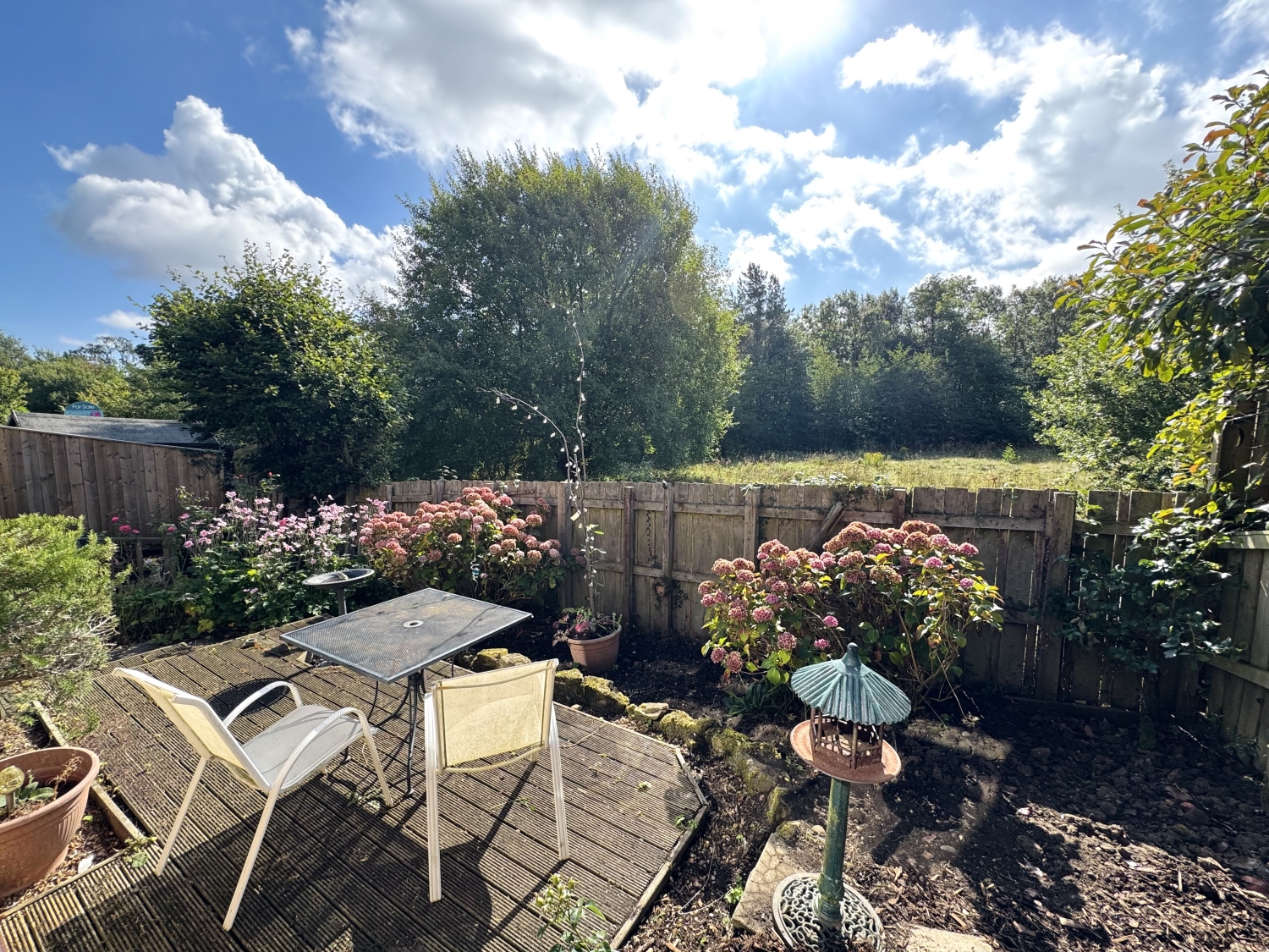 Externally, the property really comes into its own. The private south-facing rear garden enjoys open aspects over fields and offers a superb mix of lawn, mature borders, shrubs, decked and patio seating areas – perfect for outdoor dining and relaxation. There is also a timber shed, side access to the front elevation, and direct access into the garage.