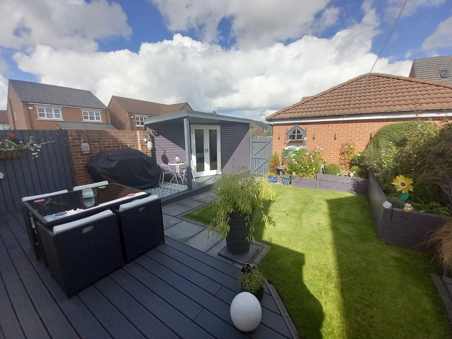 Offers Over £299,950This beautifully maintained property is set within a quiet cul-de-sac and offers spacious, modern living across three floors. The ground floor features a welcoming entrance hall, a bright lounge, and a light and spacious dining kitchen complete with integral appliances and a waste disposal unit. A utility room and a cloakroom/WC add further convenience. On the first floor there are three double bedrooms, one of which has its own en suite, together with a modern family bathroom. The second floor is dedicated to the impressive master suite, which includes a generous bedroom, a private dressing room, and a stylish en suite. Externally, the property enjoys a private rear garden with a lovely garden room, perfect for use as a home office, playroom, or a space to simply relax. To the front, there is an open-plan garden, while to the rear sits a larger-than-average garage complete with shelving and a boarded loft with drop-down ladder. Additional benefits include an alarm system and CCTV for added peace of mind. This is a superb family home that combines comfort, practicality, and style in an excellent location.