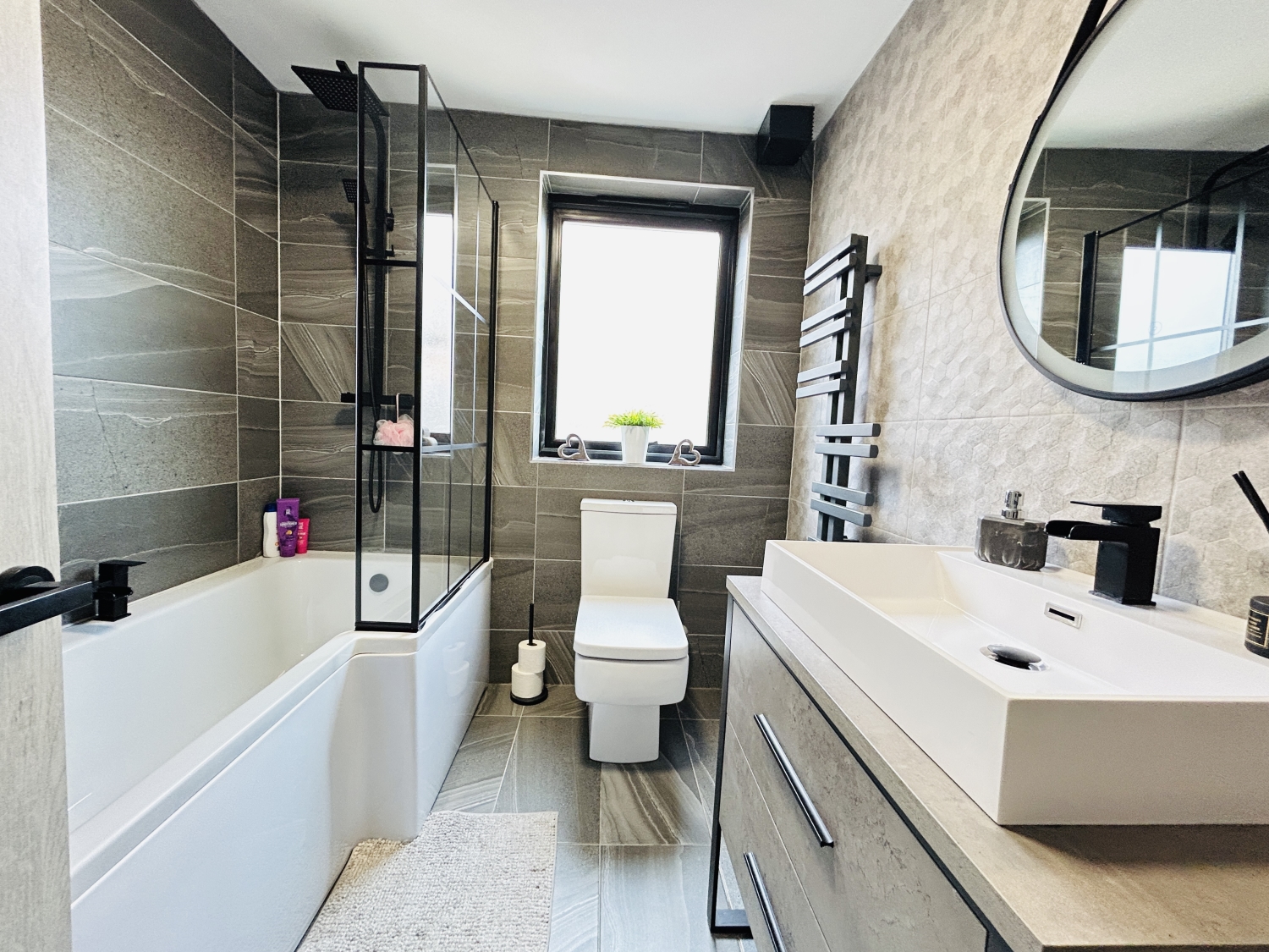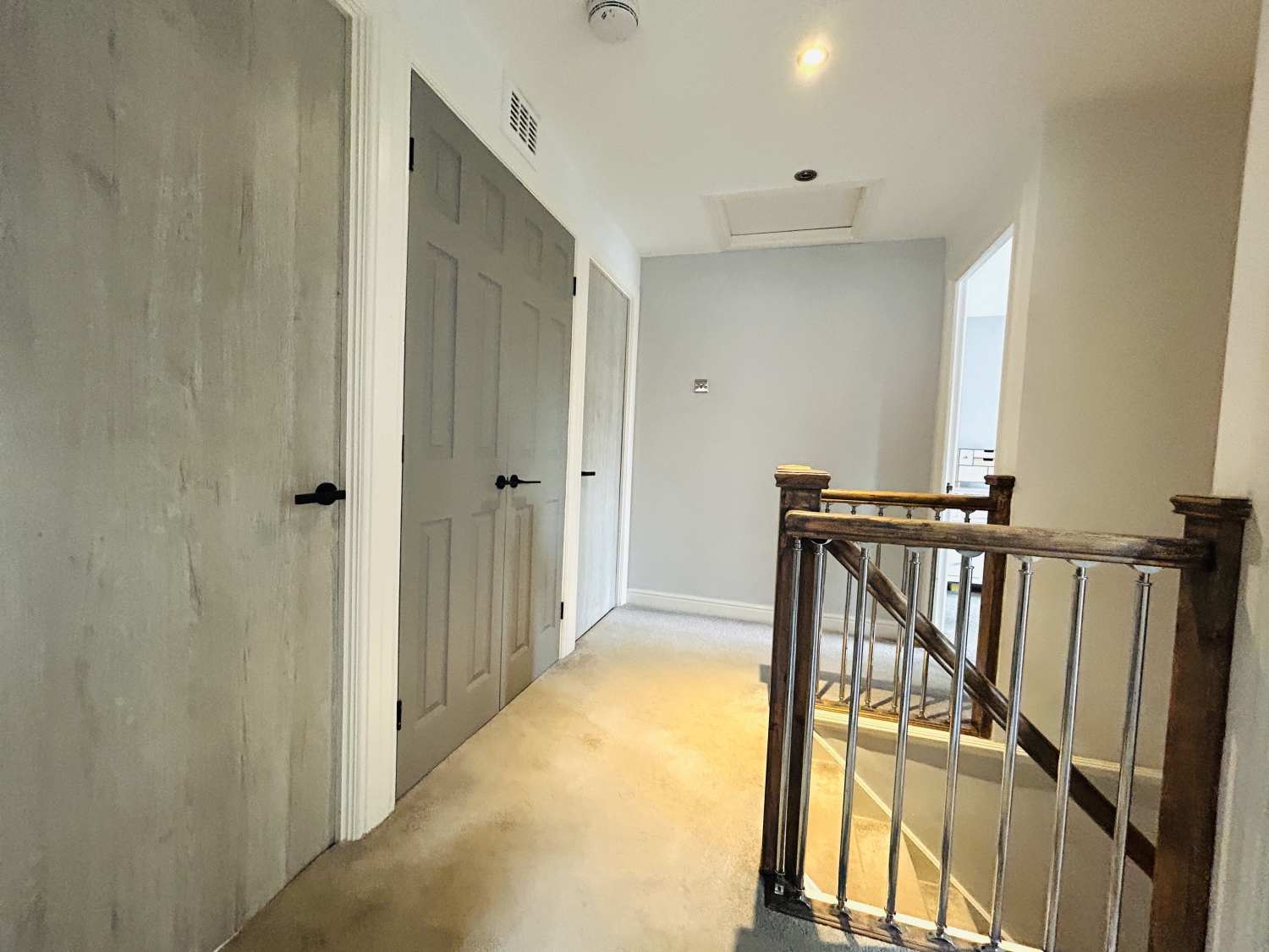 Upstairs, the stylish landing with feature balustrade and storage cupboard leads to four well-proportioned bedrooms. The principal bedroom benefits from a luxurious en-suite shower room, while the remaining bedrooms are served by a contemporary refitted family bathroom.