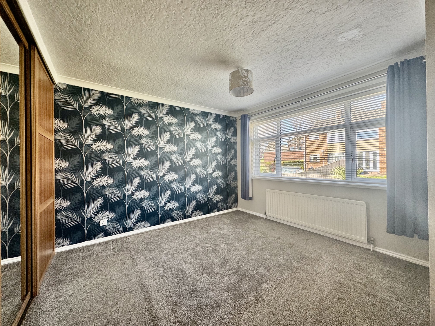 UPVC double glazed window, radiator and built in wardrobes with sliding doors.