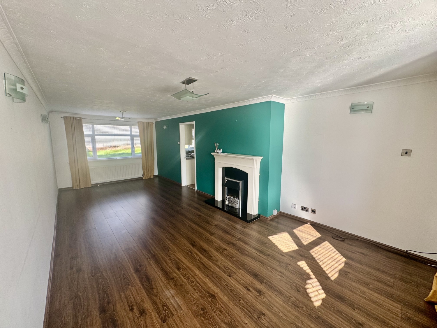UPVC framed double glazed window, radiator and wood laminate flooring.