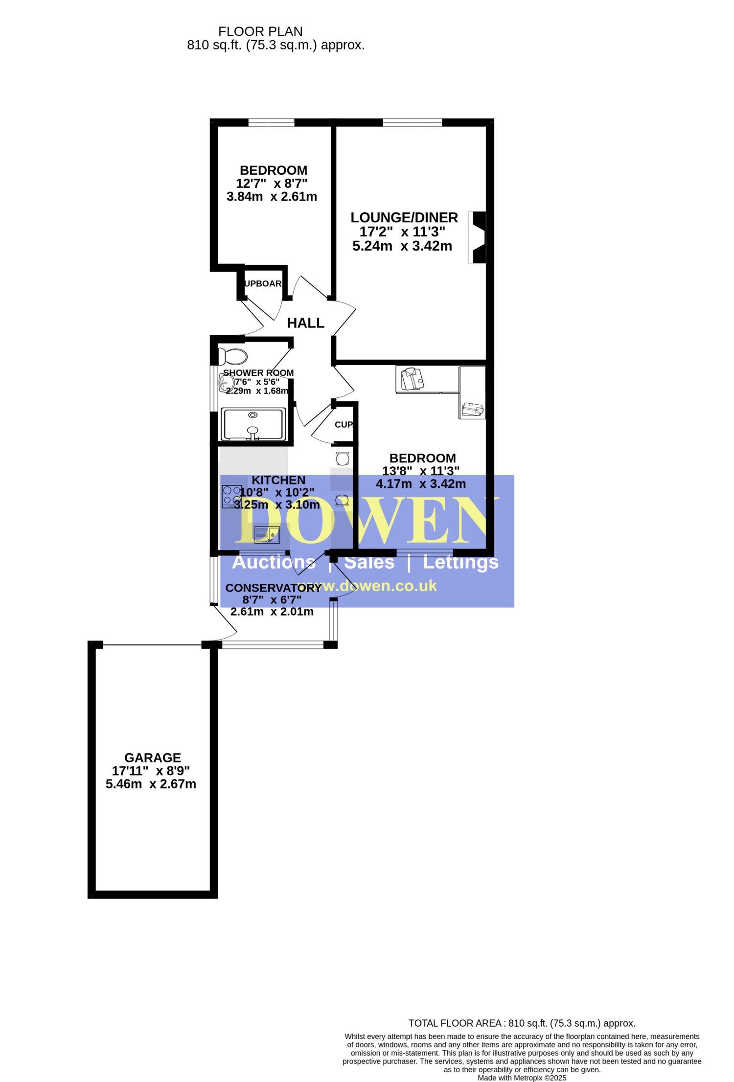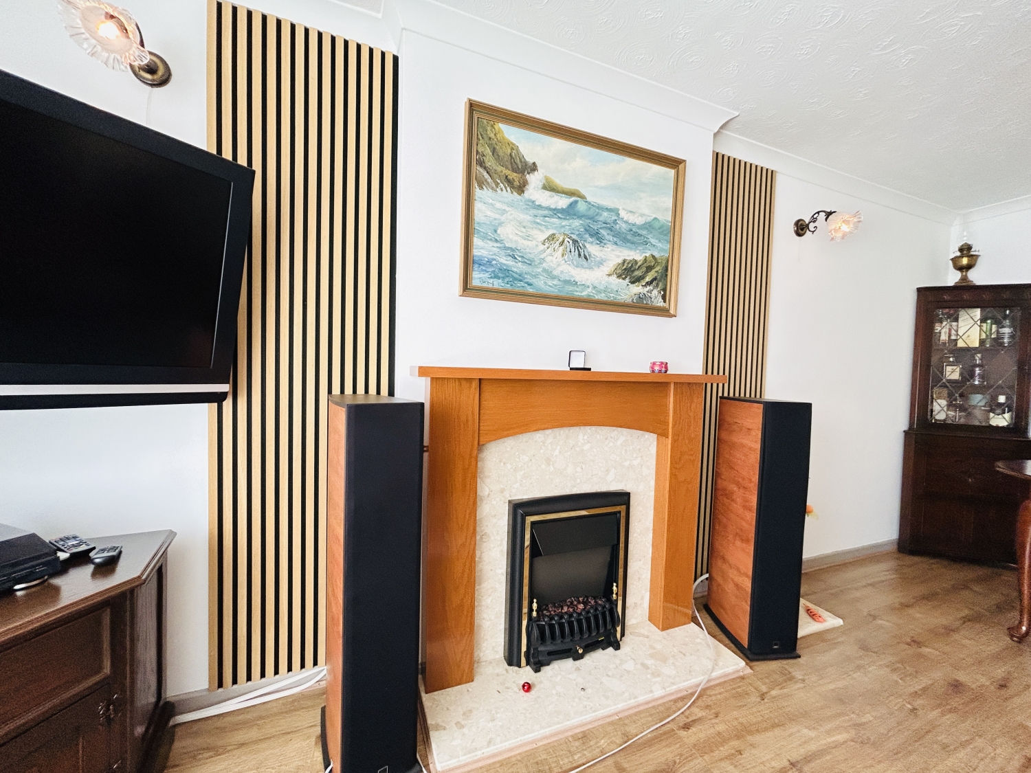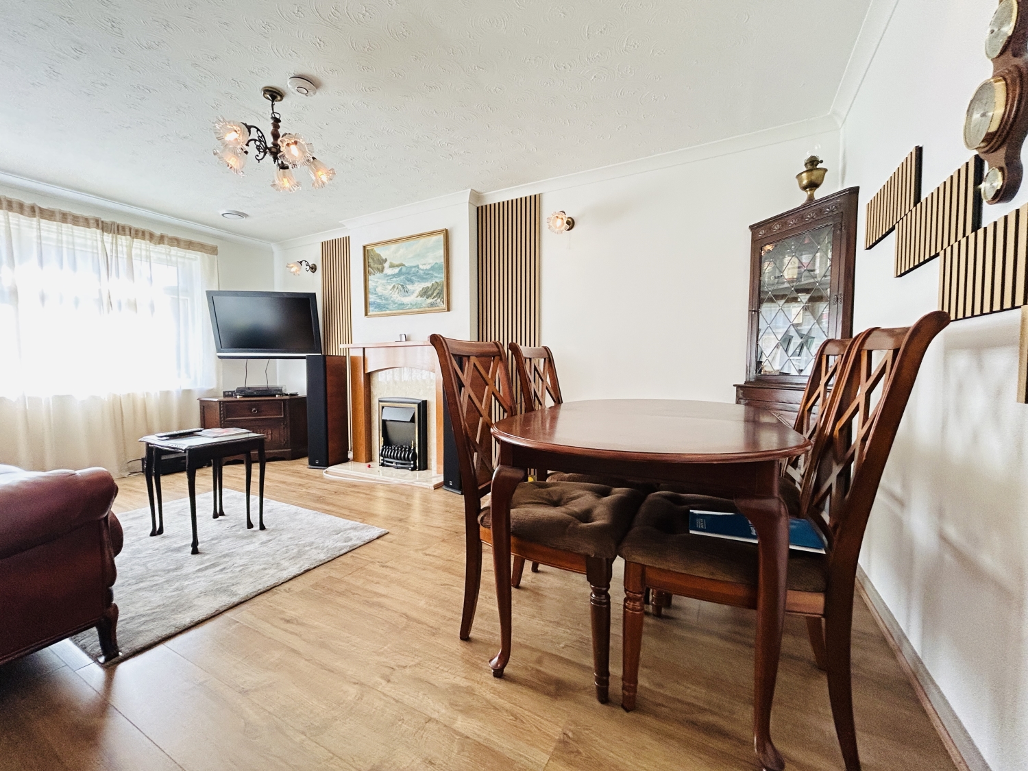 There are two generously sized double bedrooms, including a master with fitted wardrobes, and a contemporary refitted shower room. The property also benefits from a rear storage area attached to the garage.