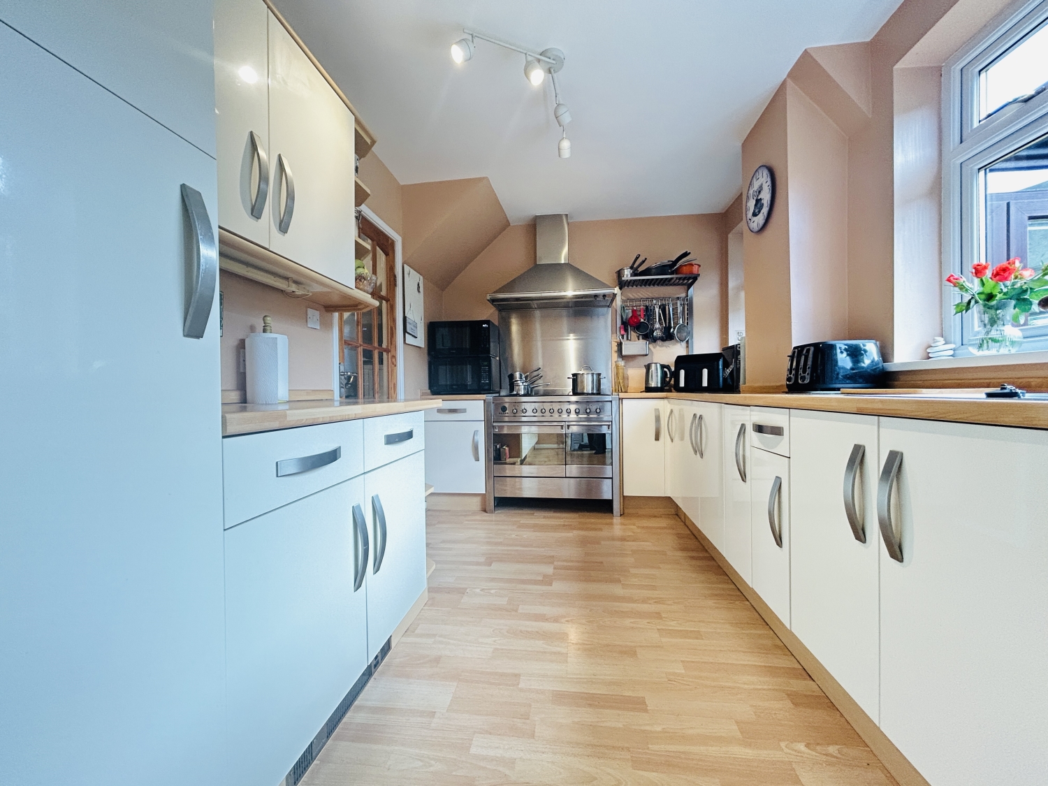 A converted garage adds valuable flexibility to the ground floor, serving as a fourth bedroom, home office, or additional reception room depending on your needs.