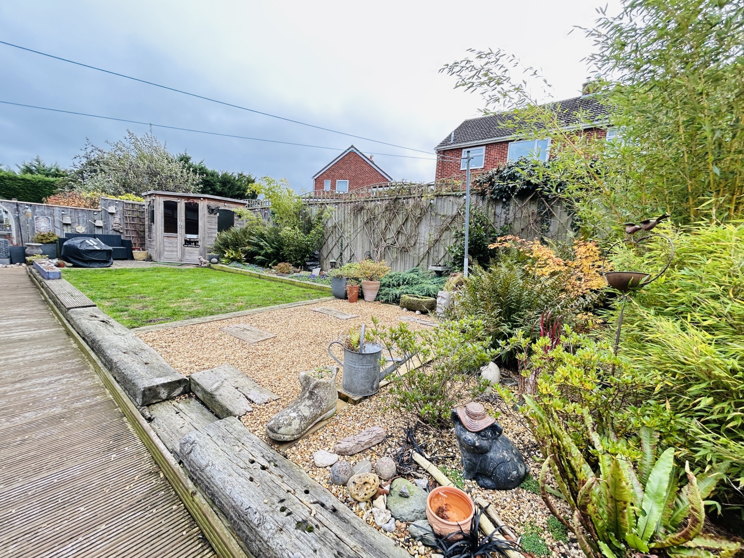 Externally, the property boasts a walled front garden with a double driveway, while the rear features an attractive enclosed garden with a lawn, patio seating areas, and a charming summerhouse—perfect for entertaining or relaxing during the warmer months.