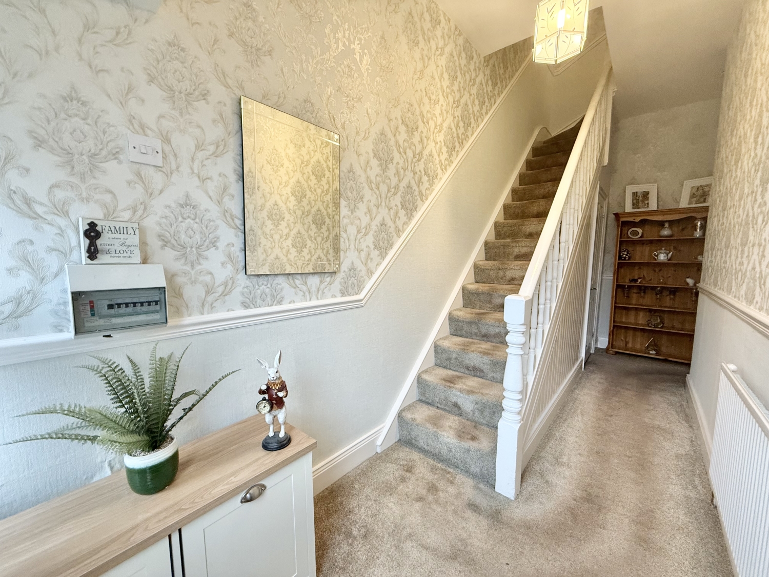 Offered for sale with no onward chain, this spacious three-bedroom mid-terrace home presents an excellent opportunity for families, first-time buyers, or investors alike. The property welcomes you with a generously sized entrance hallway with stairs leading to the first floor. The bright and airy lounge features a gas fire and opens into the dining room, which provides direct access to the rear yard—ideal for entertaining or relaxing. The kitchen includes an integrated oven, hob, and extractor fan. Upstairs, the first-floor landing leads to three well-proportioned bedrooms, with the second bedroom benefiting from fitted wardrobes. A spacious family bathroom completes the upper level. Externally, the property boasts a larger-than-average rear yard with an electric roller shutter door, offering secure off-road parking for multiple vehicles. There is also a useful outbuilding for additional storage. To the front, a walled garden area adds privacy and kerb appeal. Additional features include gas central heating and double glazing throughout. Ideally located close to local amenities, schools, and excellent transport links, this property must be viewed to fully appreciate the space and potential on offer.