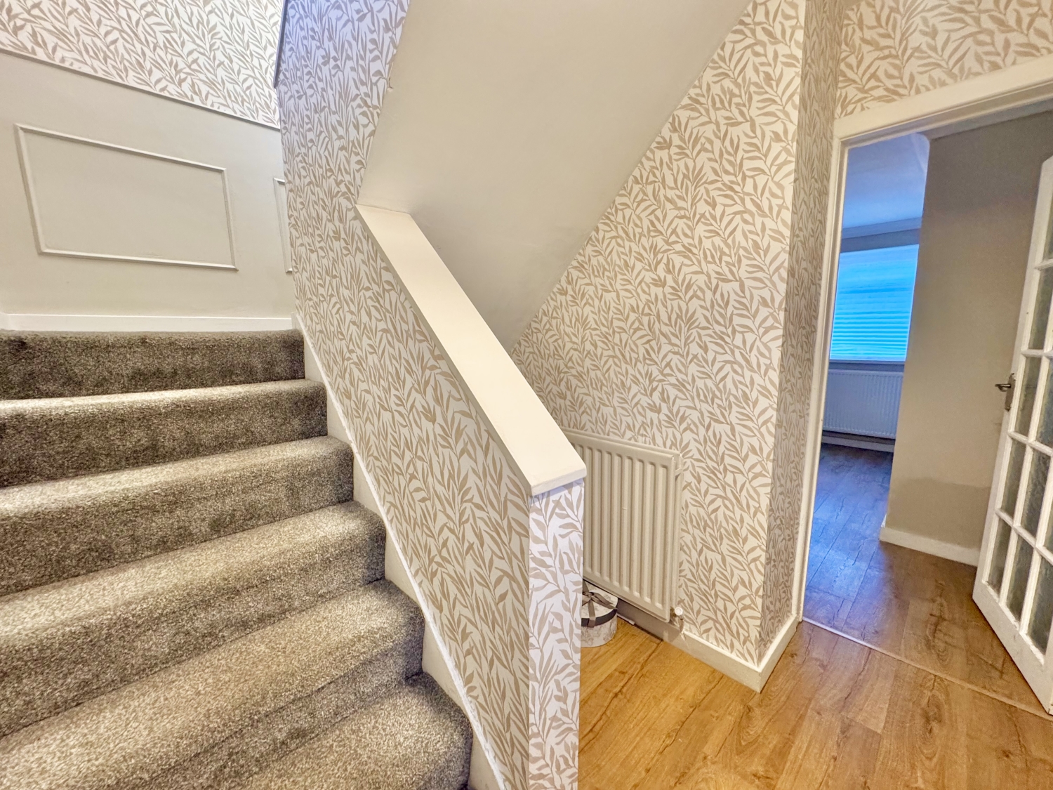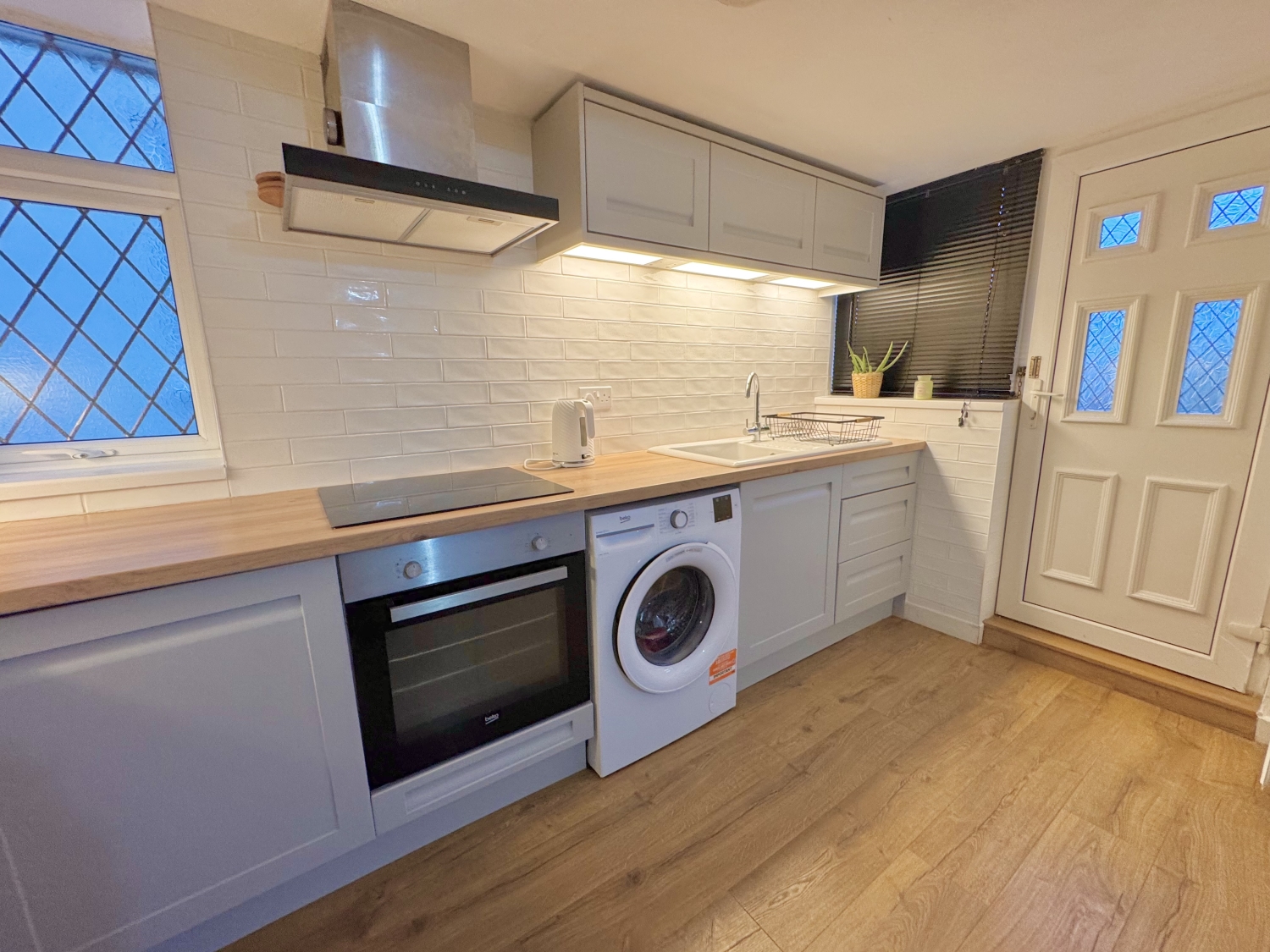 This delightful freehold property offers stylish and comfortable living throughout. The inviting entrance hallway leads to a spacious lounge featuring UPVC double glazed windows on either side, attractive wall panelling, and a bright, welcoming atmosphere. The open-plan kitchen diner boasts a modern kitchen with integrated appliances, a breakfast bar, and automatic under-unit lighting, creating a perfect space for cooking and entertaining. Upstairs, you'll find two generously sized double bedrooms and a well appointed bathroom complete with a panel bath, hand wash basin set into a vanity unit, and elegant herringbone tiling. The property also benefits from a full-width loft space with UPVC double-glazed window and lighting, offering excellent potential for storage. Externally, there are gardens to the front and rear, providing outdoor space for relaxation and play. This charming home is freehold and ideally suited for first-time buyers or small families looking for a move-in-ready property.
