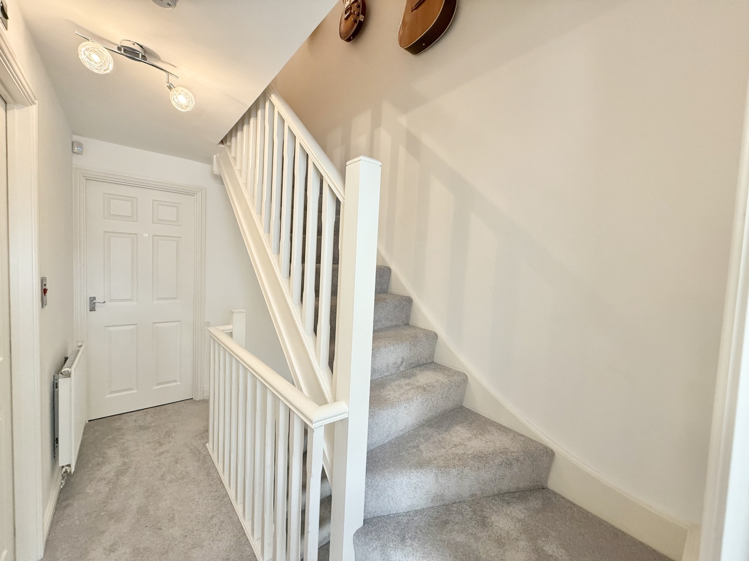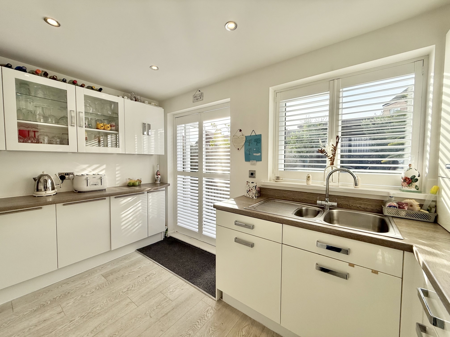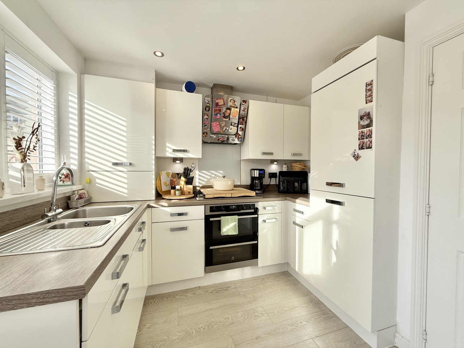 Beautifully presented three-bedroom, three-storey townhouse, offering stylish and spacious accommodation ideal for modern family living. The ground floor features an entrance porch, a welcoming lounge, a convenient ground floor W/C, and a contemporary kitchen complete with integrated appliances and a breakfast bar. Double doors lead out to the landscaped rear garden, creating a seamless indoor-outdoor flow. On the first floor, there are two generous double bedrooms, one of which benefits from fitted wardrobes, and a modern family bathroom. The second floor is dedicated to the main bedroom suite, which includes an en-suite shower room, providing a private retreat. Externally, the rear garden has been thoughtfully landscaped and features a pergola and outdoor fire, perfect for entertaining or relaxing. To the front, there is a driveway offering off-street parking, along with gated side access. Additional benefits include gas central heating and double glazing throughout. Located in a popular residential area, close to local amenities and transport links, this delightful home must be viewed to be fully appreciated.