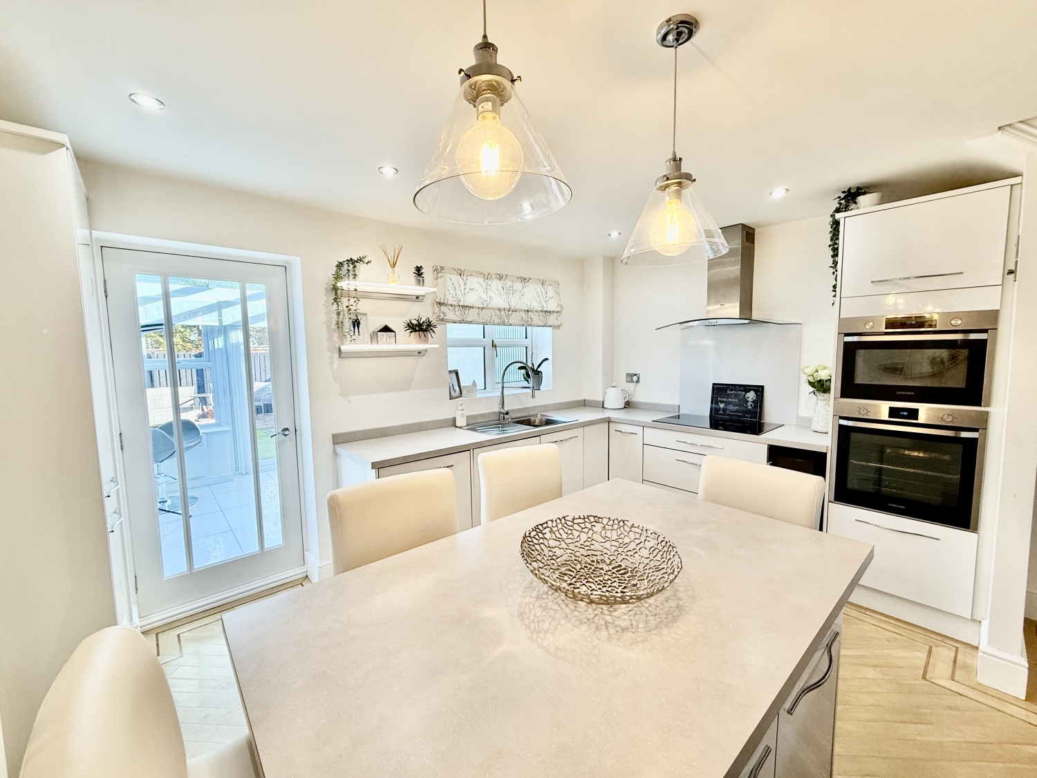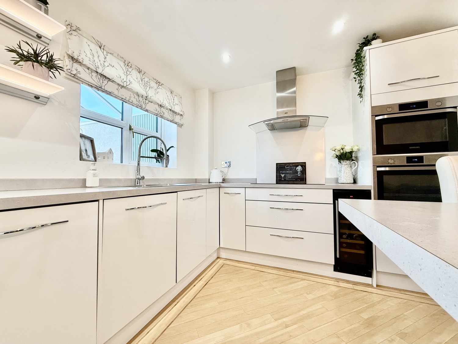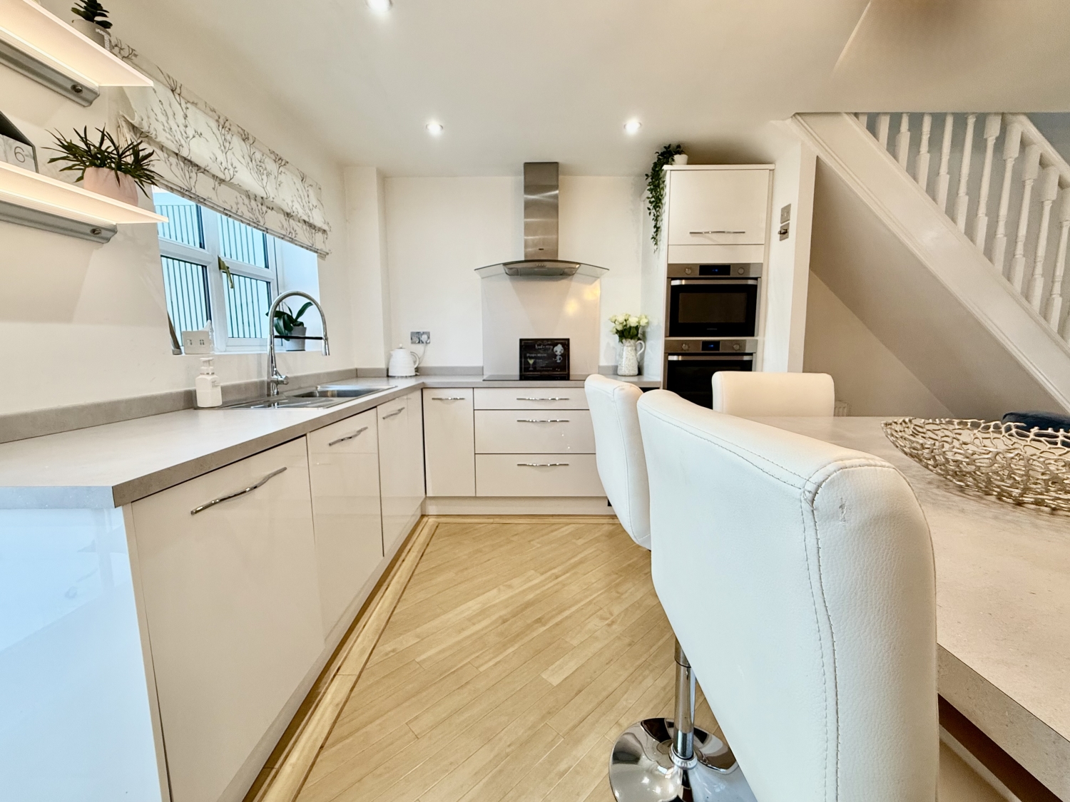 Ground Floor -Entrance Vestibule - Accessed via secure entrance door, access to cloakroom/WC and lounge.Cloakroom/Wc - Fitted with a modern two piece white suite and chrome fittings comprising: pedestal wash hand basin and low level WC.Stunning Open Plan Lounge & Kitchen - 7.11m x 4.04m (23'04 x 13'03) -Lounge Area - Attractive feature fire surround and electric fire, stairs to the first floor, beautiful Karndean flooring which continues into the kitchen area.Kitchen Area - Fitted with a beautiful range of white high gloss units to base and wall level with complementing worktops and a range of integrated appliances including double oven, hob, extractor, integrated fridge and washing machine. Matching island with breakfast bar, access to the garden room.Garden Room - 3.89m x 2.72m (12'09 x 8'11) - An impressive extension which is currently used as an additional sitting room with French doors opening to the landscaped rear garden, glass roof, uPVC double glazed windows and attractive hig