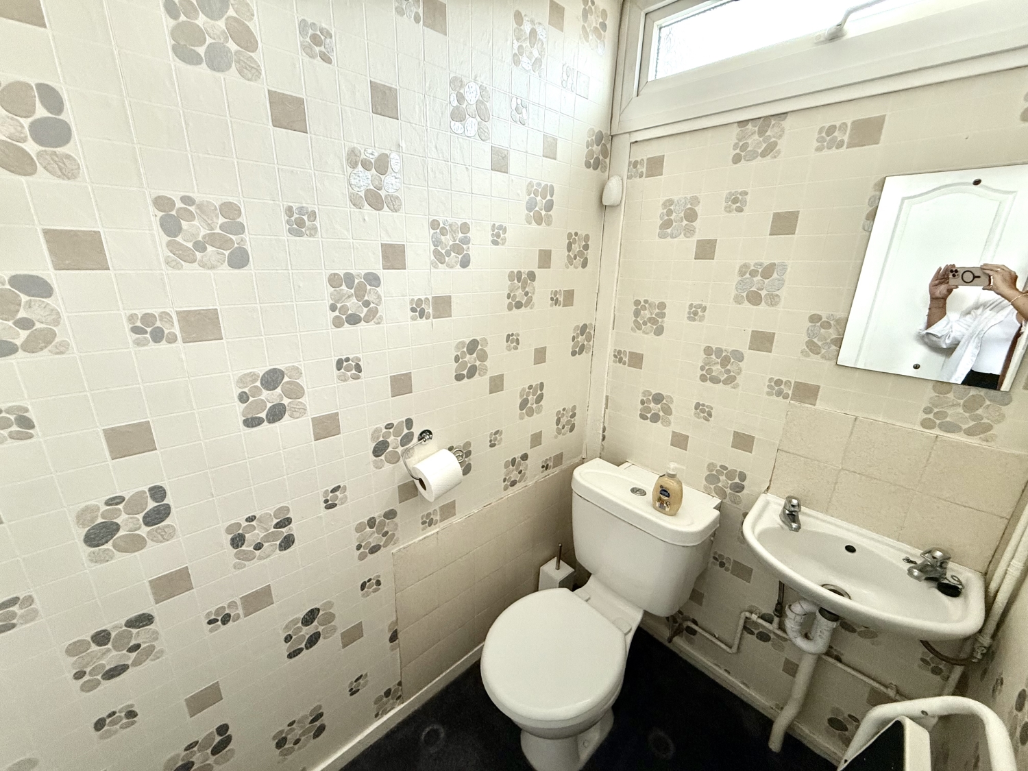 Fitted with a two piece suite comprising a low level WC and wash hand basin. Double glazed frosted window to the rear.