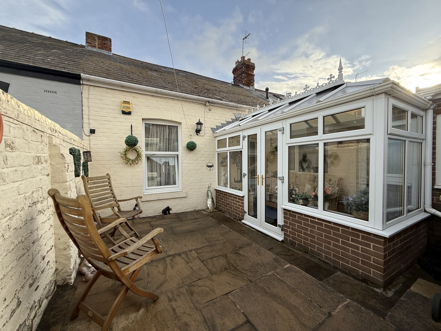 Offered with no onward chain, this spacious two-bedroom, double-fronted cottage presents an excellent opportunity for buyers seeking a well-laid-out home on one level, in a convenient and popular location. The accommodation briefly comprises: an entrance porch leading to a welcoming hallway, a spacious lounge with double doors opening into a second reception room, which in turn provides access to the conservatory. The kitchen is well-fitted and benefits from integrated double oven, hob, extractor fan, and a new dishwasher, with further access to the conservatory and the rear garden. There are two generous double bedrooms, with the main bedroom featuring fitted wardrobes, and a modern bathroom suite completing the internal layout. Externally, the property boasts a wall-enclosed rear yard, paved for low maintenance, with an electric roller shutter door providing off-road parking. To the front, there is a walled area and on-street parking available. Further benefits include gas central heating and double glazing throughout. Located close to local amenities, transport links, and Sunderland Royal Hospital, this attractive cottage is ideal for those seeking a spacious and practical home on one level.
