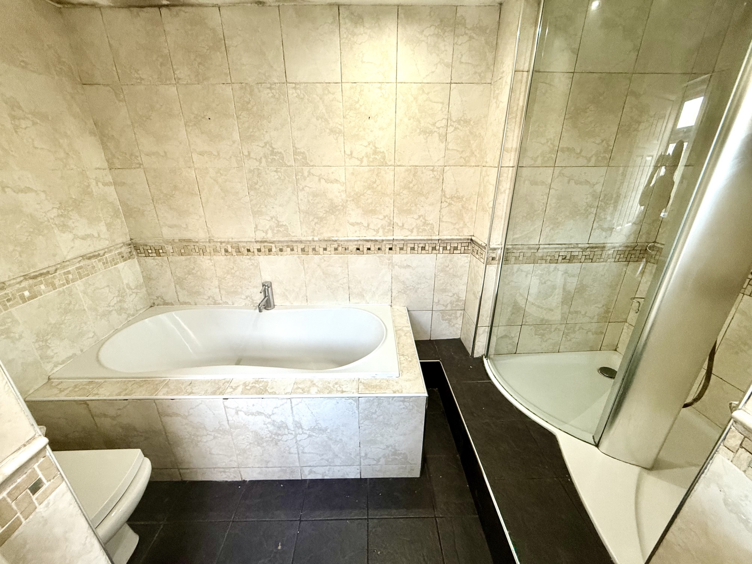 Fitted with a four piece suite comprising a walk in shower, bath with mixer tap, WC and vanity wash hand basin. Double glazed frosted window to the side, double central heating radiator, downlighters, tiled flooring and fully tiled walls.