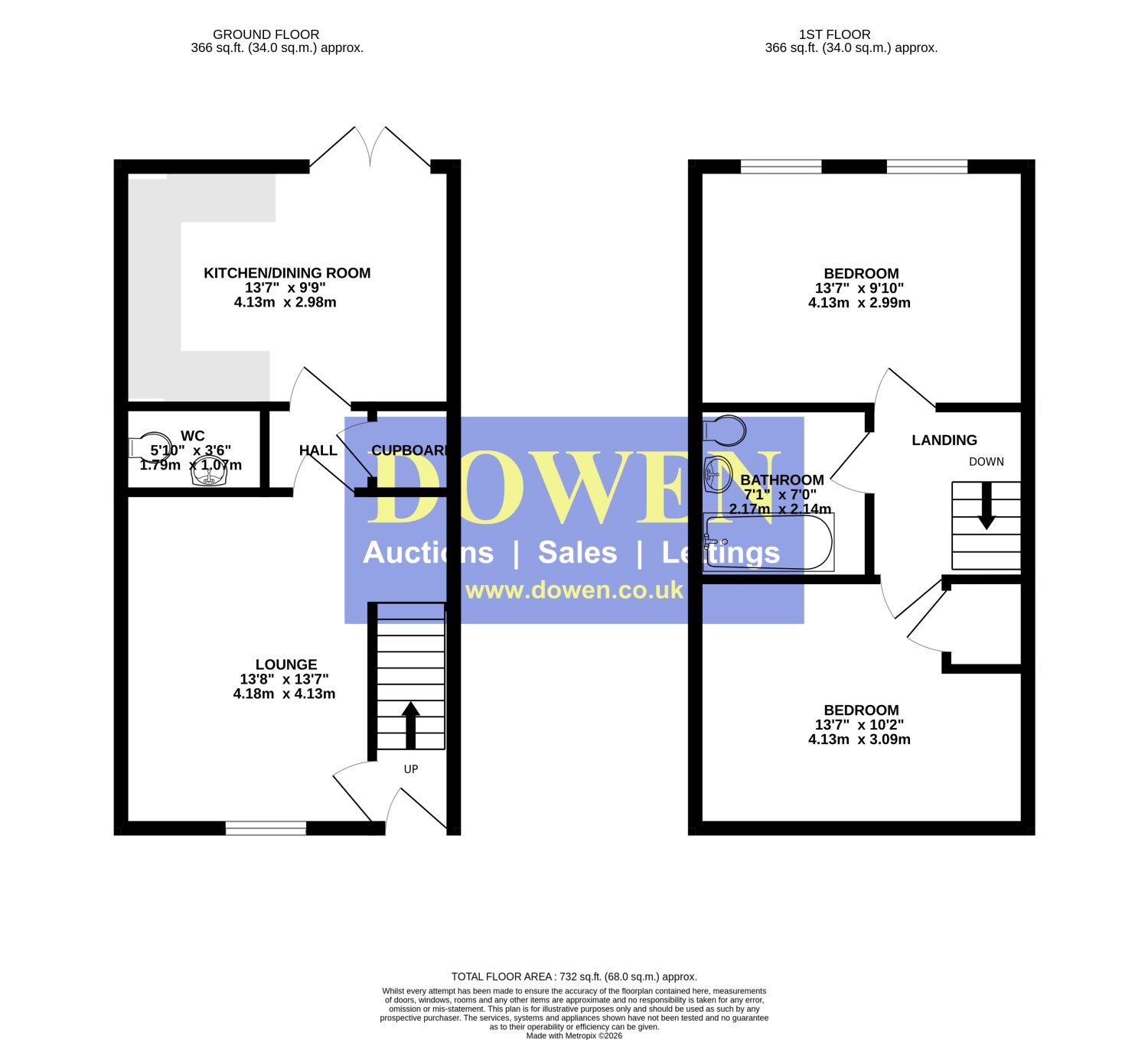 The home features an entrance hallway leading into a spacious lounge, followed by an inner hall with a useful ground floor WC and storage cupboard. To the rear, a modern kitchen and dining area enjoys French doors that open directly onto the garden, allowing for plenty of natural light and creating a seamless indoor-outdoor flow. Upstairs, the property offers two double bedrooms and a well-presented bathroom/WC with shower over bath.