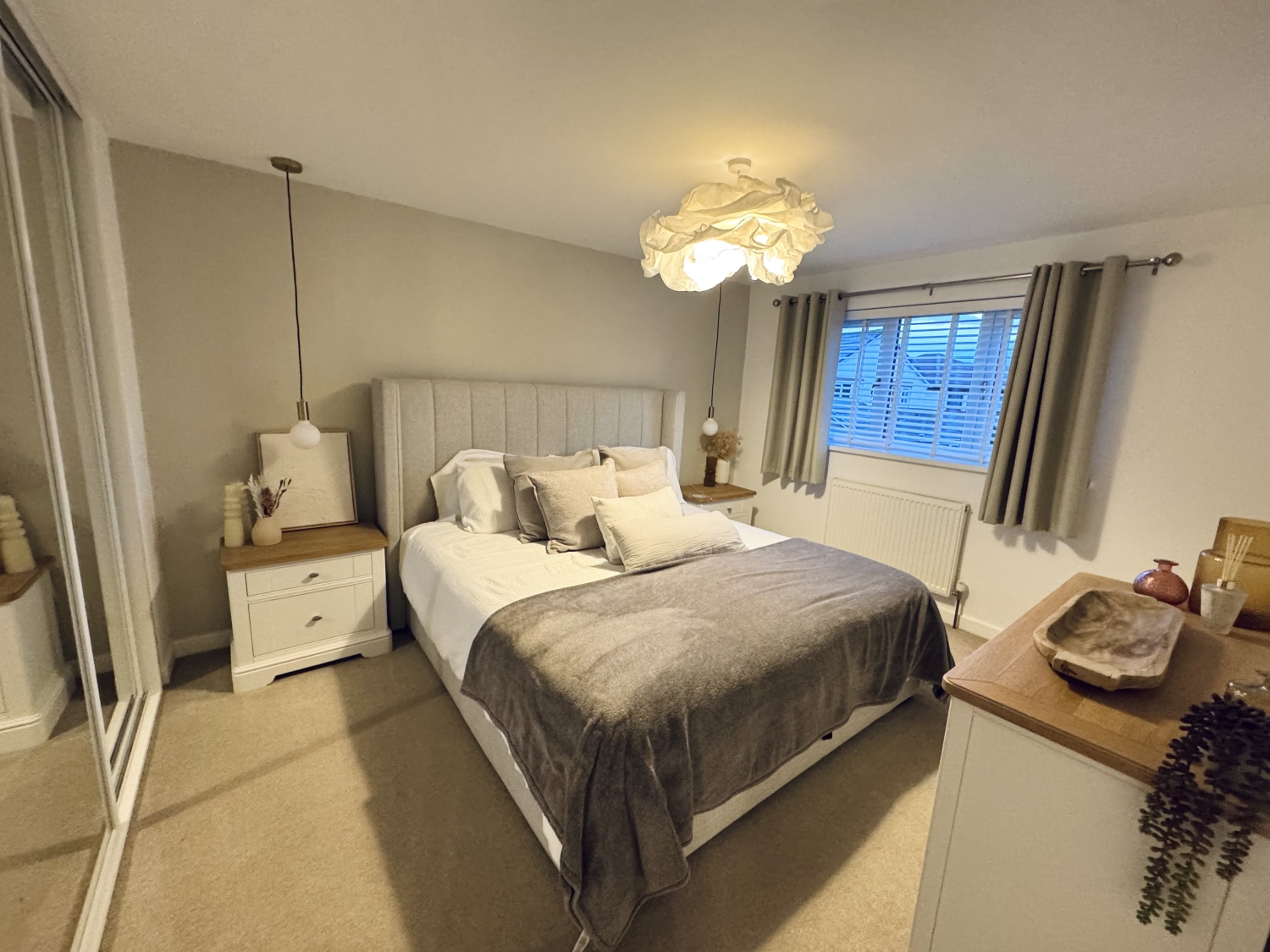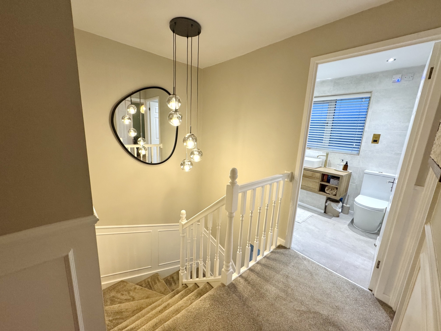 Upon entering the property, you are welcomed into a bright and inviting entrance hall, complete with elegant feature panelling to the walls, a useful storage cupboard, and access to a downstairs W/C. The staircase leads to a spacious first-floor landing, also adorned with stylish panelling, setting the tone for the rest of the home.