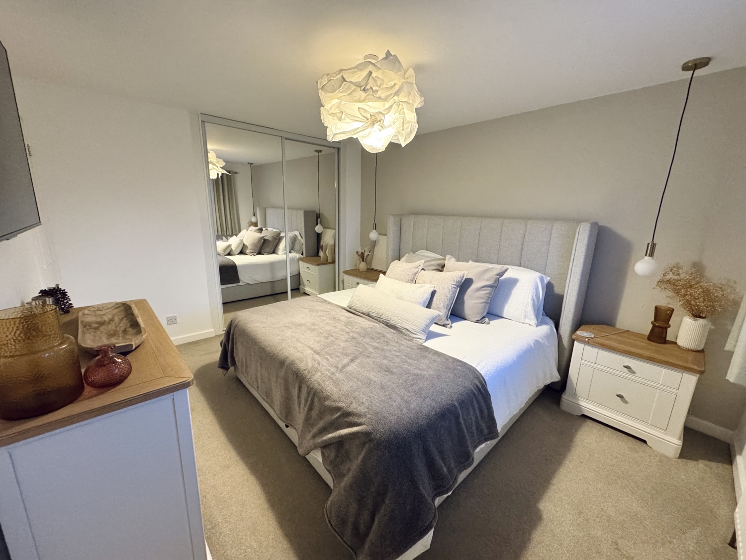 Upstairs, the property boasts three generously sized double bedrooms, with the master bedroom and bedroom three benefiting from fitted wardrobes. The recently refitted bathroom adds a touch of luxury, designed with modern fixtures and finishes.