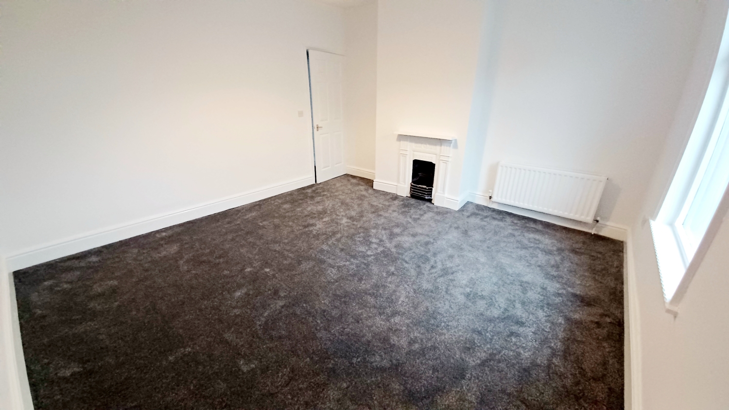 Double glazed window, radiator, feature fireplace.
