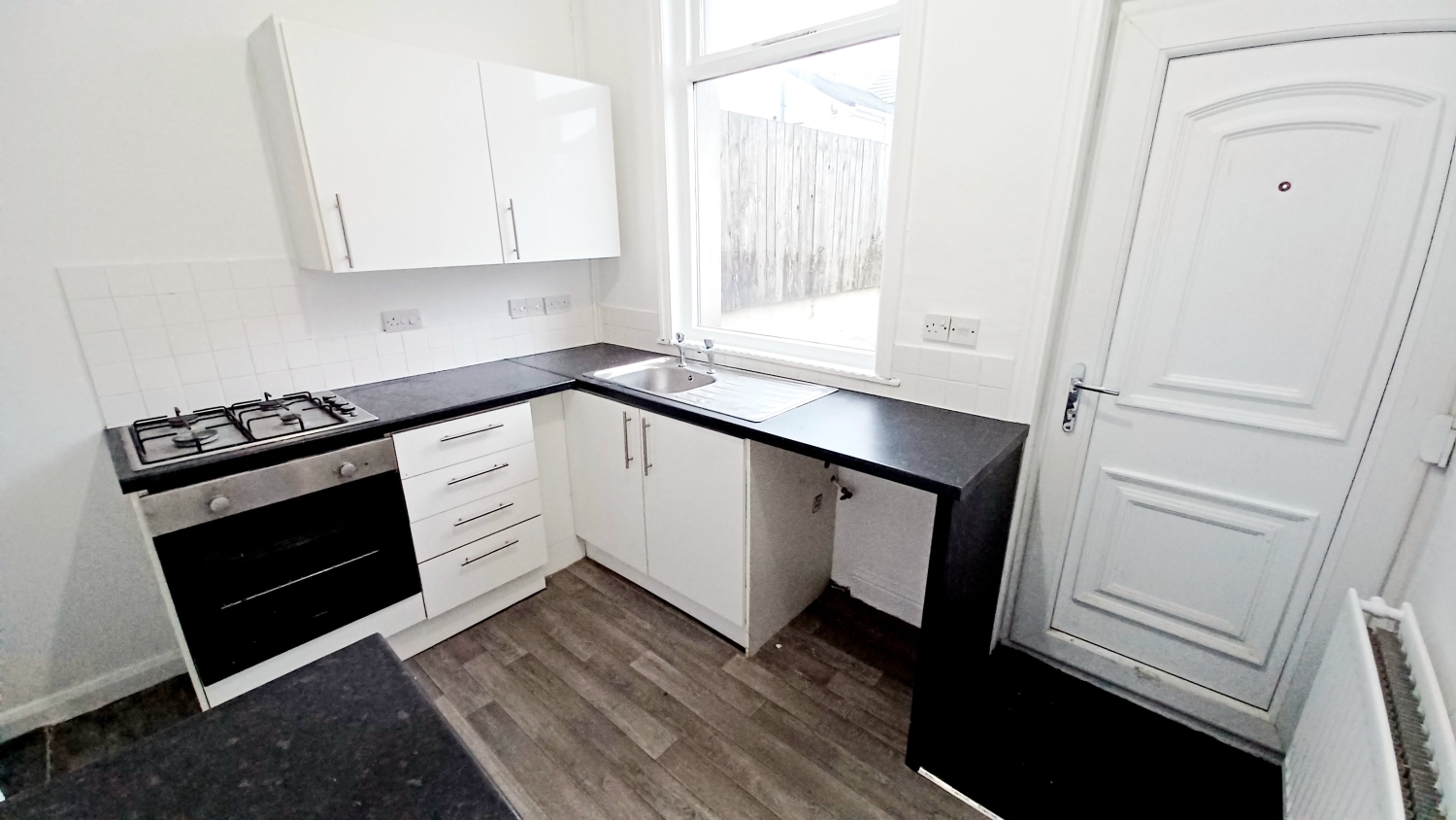 Fitted with a good range of base and wall units finished in white, heat resistant worktops, stainless steel sink unit with mixer tap, integrated oven with hob, tiling to splashbacks, plumbing for automatic washing machine, upvc framed double glazed window, radiator, lino flooring, door accessing the rear of the property and door into:-