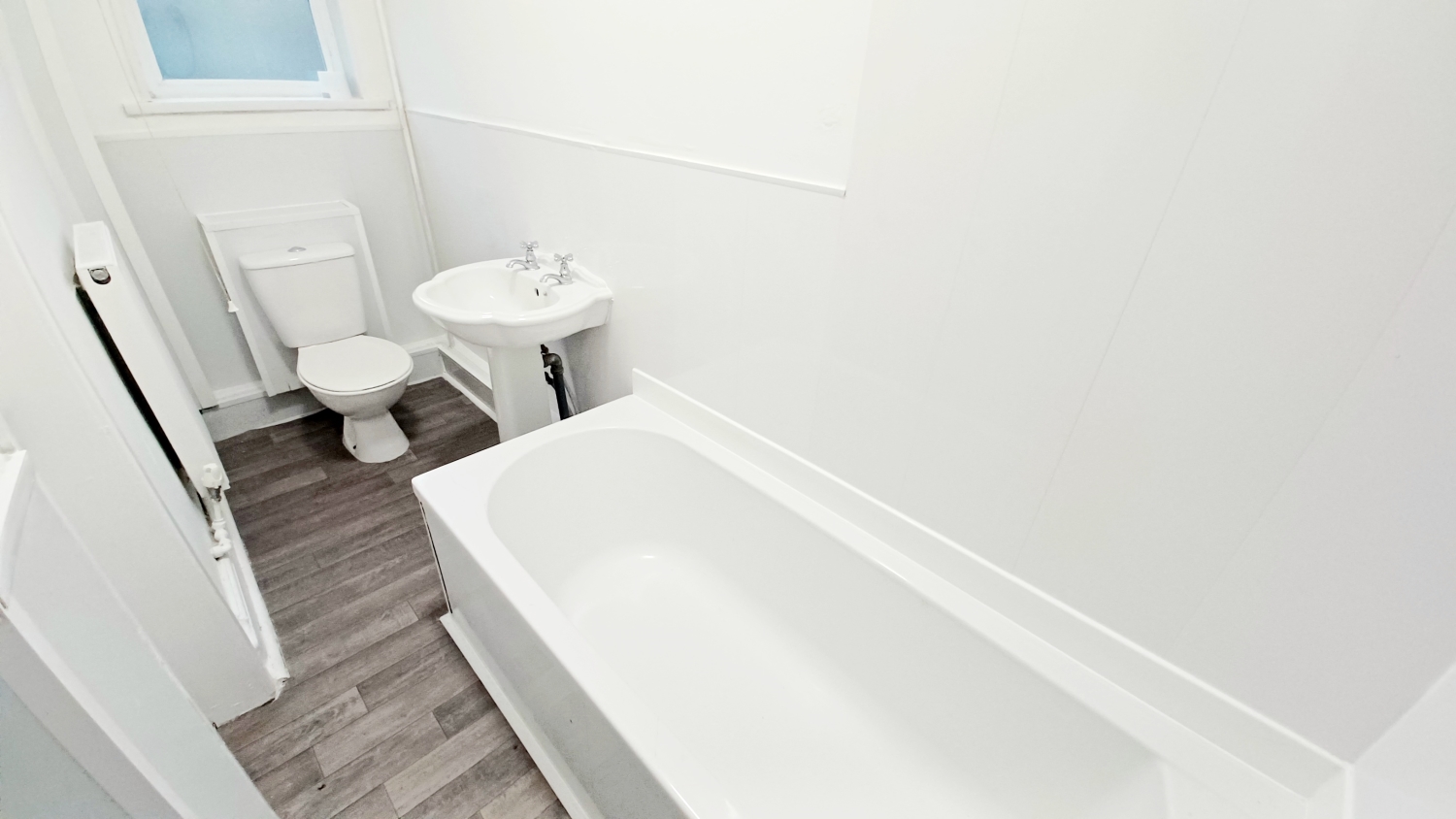 Fitted with a well appointed 3 piece suite comprising a panel bath with overhead shower, pedestal handwash basin, low level WC, part cladding to the walls, upvc framed double glazed window, radiator, lino flooring, extractor.