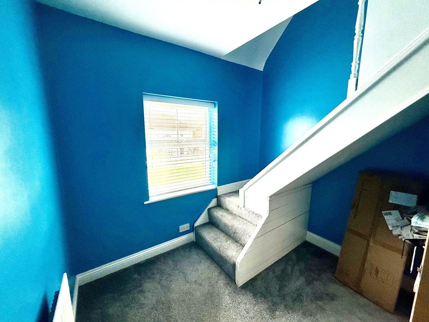 Double glazed UPVC window to the front, single central heating radiator and access to the loft room.